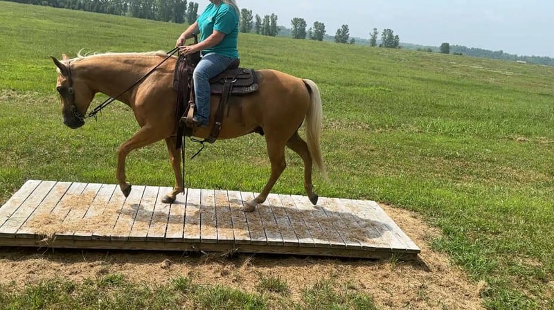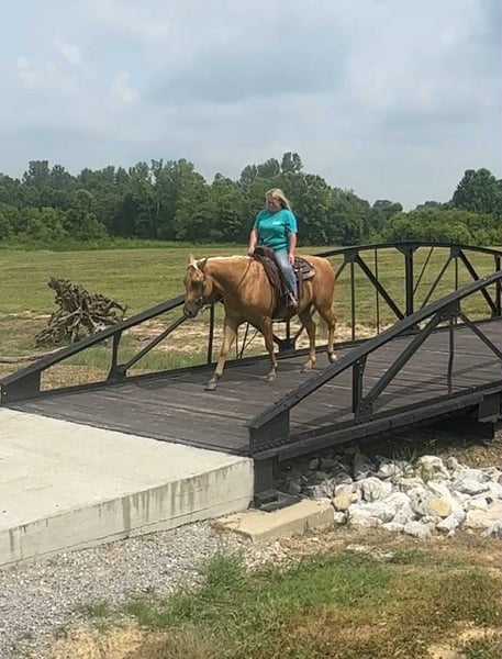 ONLINE AUCTION Place your bids at www.PlatinumEquineAuction.com Starting Bid $3500 Auction ends September 28th, 2025 Need a new saddle? Check out White Rock Saddles on our website or Facebook Meet ASLD DUALIN MARLEY who is a 2017 model, Reg AQHA Gelding also knows as Buddy. Buddy is a gorgeous golden palomino that is standing a stout built, 14.2 hands tall. He has a pure white mane and tail. We call him Buddy because he wants to be your buddy. He has a funny personality and wants all the attention. Buddy is very loving and easy to catch. He will actually catch you as he loves attention! Buddy is royally bred going back to the famous Frenchmans Guy on the top side and Rowdy Blue Man on the bottom! Buddy is out standing on the trails and has been trail ridden through many different types of terrain. He is sure footed and honest. Buddy will cross creeks, go through any body type of water, thick brush, logs, bridges, rough terrain, up and down cliffs with ease and has been through all the obstacles. He is a point and go type of horse. He has been rode on the road and is use to all kinds of traffic, heavy machinery, ATV’s and dog safe. You can ride Buddy out alone with ease or with other horses. Buddy has also been hooked up to a wagon single or double and will go all day. Buddy has also been a Jr rodeo horse doing all the events as well as a grand entry carrying the flag. You can use him on the ranch roping, checking and doctoring cattle. Buddy will stand still for you to get on him from the ground, a mounting block or whatever you find out on the trail. He stands to be groomed, fly spray, stands still to be saddled, bathes good, loads great and stands for the farrier. Buddy is the true definition of an all around horse. He is broke for any level rider. We invite anyone and everyone to come meet and ride Buddy at our barn in Henderson, KY. We are happy to assist with transportation arrangements. For any questions about Buddy please contact Tasha with DNT Horses 270-844-2400. ONLINE AUCTION Place your bids at www.PlatinumEquineAuction.com Starting Bid $3500 Auction ends September 28th, 2025 Need a new saddle? Check out White Rock Saddles on our website or Facebook