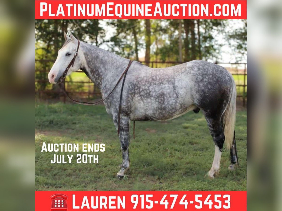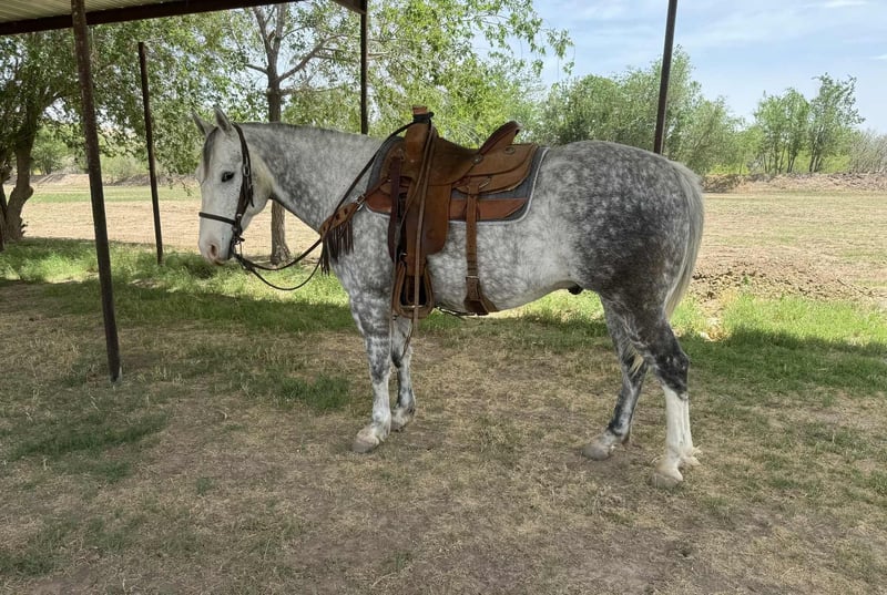 ONLINE AUCTION Place your bids at www.PlatinumEquineAuction.com Starting Bid $3500 Auction ends July 20th 2025 Need a new saddle? Check out White Rock Saddles on our website or Facebook Snoop is the absolute all around family horse! He is 8 years old and has been with us for 2 yrs now. He’s been trail road and ranched on in west Texas . He’s as solid as they come. He’s a very reliable using horse that will get a cowboys job done or be a family horse and cruise down the road for an evening trail ride. Snoop is 15h tall he’s built like a bulldog quarter horse wide,stocky, big hip with a little head. He’s got the coolest dark dappled grey color. He’s for dappled size as apples! To top it off he has the personality to match his color absolutely unique and special, wants to be your friend . We’ve used him in extensively on the ranch from rounding cows up or pushing steers up at the roping practices or checking fences. He’s also solid on the heel side, he’s good in the box and will really watch a cow and rate off, he’ll be strong to the horn. He knows his leads, he will lope big pretty circles. He’s been around the barrels, flags, tarps, traffic, he’s absolutely safe for any level rider will be safe everyday of the week and 100% reliable. He is easy to shoe, saddle , bathe , load and haul with no issues. He will be straight legged no bumps or blemishes and 100% sound. If you are looking for your next family horse snoop is your guy don’t miss him. Located in El Paso, TX. Contact Lauren Lara 915-474-5453 with any questions. ONLINE AUCTION Place your bids at www.PlatinumEquineAuction.com Starting Bid $3500 Auction ends July 20th 2025 Need a new saddle? Check out White Rock Saddles on our website or Facebook