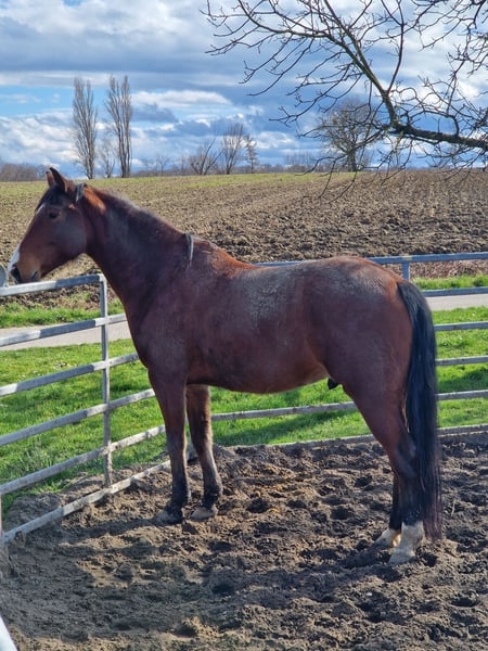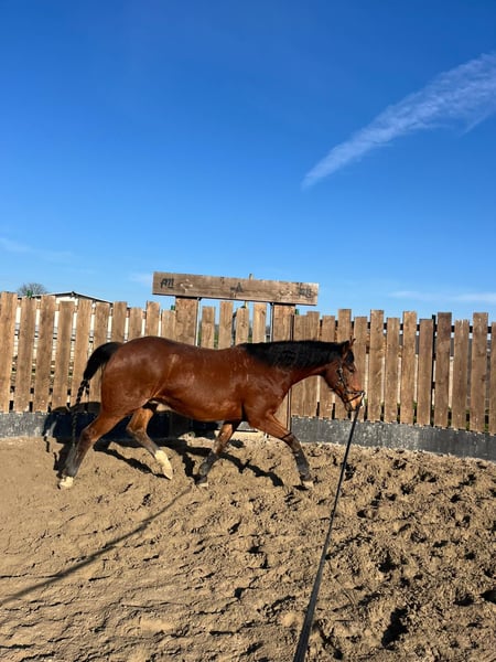 Zu verkaufen steht dieser super hübsche, stabil gebaute QH Wallach „KARLYE“ (AH KARLYE CHEX aus LILPEPPY DUNIT RIGHT x AH ANOTHER CHEX). Karlye ist ein sehr lernbegieriges und interessiertes Pferd, welches mit viel Go und einem sehr guten Grundgerüst ausgestattet ist. Er kann somit auch größere Reiter sehr gut abdecken! Stockmaß 161 cm. Er hat schöne weiche Gänge und steht sehr leicht an den Hilfen, zum Reiten ein absoluter Genuss. Er war die letzten Jahre im Freizeitbereich tätig und steht aktuell zum Korrekturberitt bei Miranda Mears im Elsass (68510 Kappelen) im Training. Dort kann er auch Probegeritten werden. Karlye stand schon im Offenstall in gemischter Herde, oder zu zweit mit Wallach und auch in der Box ist es kein Problem. Beim Umstellen hat er keine Probleme und auch geht er ohne Probleme von der Herde weg oder bleibt alleine zurück. Wichtig für ihn ist viel Auslauf auf der Weide gerne zusammen mit anderen Pferden. Er liebt es zu spielen und braucht (um sich nicht zu langweilen) die Bewegung tagsüber! Am Boden ist er schnell mal abgelenkt und man braucht etwas Körperpräsenz um mit ihm locker an der Hand zurecht zu kommen, dabei ist er aber nie unartig, er frägt eben manchmal nur nach ob man das auch so meint. An der Longe/in der Bodenarbeit sowie unter dem Sattel hat er keine Unarten und macht sehr gut mit. Auch Freiarbeit und Springen macht ihm extrem viel Spaß sowie Gelassenheitstraining. Aktuell wird noch ein bisschen Feinschliff an der Rittigkeit & Muskelaufbau durchgeführt . Karlye kommt nicht für Anfänger in Frage da er bei unsicheren Reitern/Besitzern schnell selber das Ruder übernimmt und gemütlich sein Ding macht. Er wird verkauft, da er aktuell unterfordert ist und mit nicht ausreichend anspruchsvollem Training schnell gelangweilt ist. Wer ein Pferd sucht für 1-2x die Woche reiten oder zum wiedereinsteigen wird mit Karlye nicht gut klarkommen. Wer es versteht ihn fair zu fordern wird in ihm einen tollen willigen Partner haben. Optimal für: eine große Familie in der jeden Tag richtig abwechslungsreiches Programm mit ihm gemacht wird, oder für eine Einzelperson die Spaß hat an langen Wanderritten, auf Kurse gehen, oder sogar kleine Turniere (er soll nicht in den großen Sport). Alles was ihn fördert ist prima und da blüht er regelrecht auf. Er geht alleine und in der Gruppe ins Gelände. Eine AKU von 2023 ist vorhanden, er wurde immer regelmäßig entwurmt und geimpft sowie die Hufe bearbeitet. Er läuft barhuf. Er hat einen Equidenpass und ein Certificate of Registration. Beide Eltern sind Panel N/N. Aktuelle Reitvideos sowie Bewegungsvideos sind vorhanden! Keine Krankheiten oder Lahmheiten bekannt, keine Unverträglichkeiten. Ich wünsche mir für ihn ein schönes Zuhause, daher ist der Preis 7000.- bis 10 000.- VH Platz vor Preis Zubehör kann gerne mit erworben werden.