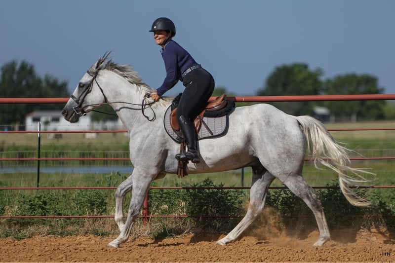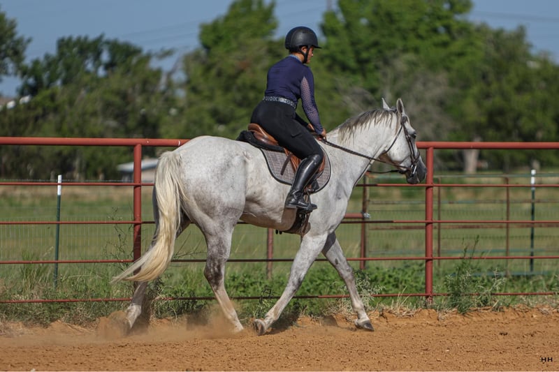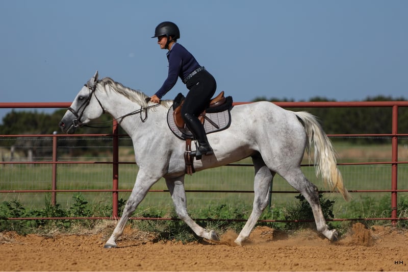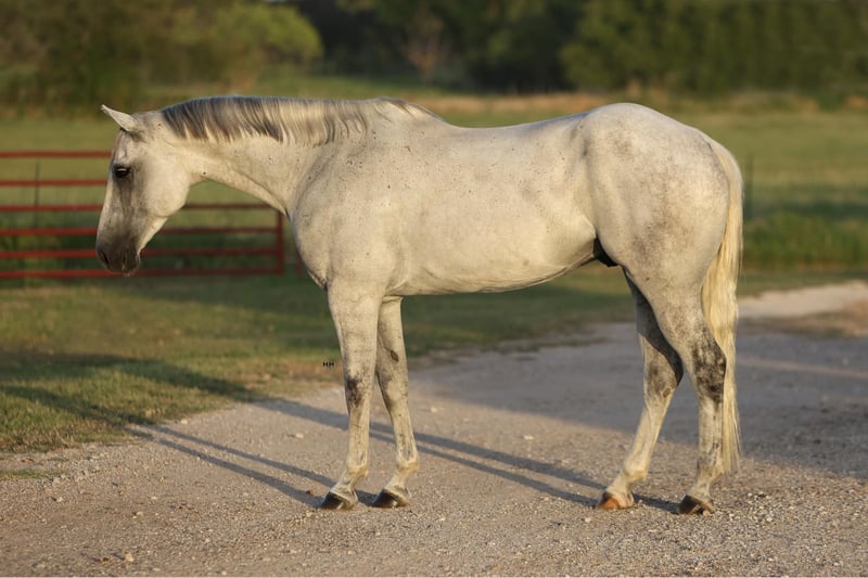 ONLINE-AUKTION Geben Sie Ihre Gebote unter www.PlatinumEquineAuction.com ab. Startgebot $3500 Die Auktion endet am 28. Juli 2024. Brauchen Sie einen neuen Sattel? Schauen Sie sich White Rock Saddles auf unserer Website oder Facebook an! Greys Dashing Twist alias "Zeus" ist ein 7-jähriger Appendix Registered Quarter Horse Wallach mit einem Stockmaß von 16,2H. Dieser große Kerl hat die typische Wallach-Persönlichkeit, die mit dem Strom schwimmt. Er ist sehr willig zu gefallen und versucht sein Bestes zu tun, was immer Sie verlangen. Zeus ist für seine Größe recht athletisch und kann aufgrund seiner Sportlichkeit verschiedene Disziplinen absolvieren. Seine körperlichen Fähigkeiten sind nicht seine einzigen Attribute, denn er ist äußerst intelligent und weiß, wie er schwierige oder stressige Situationen am besten meistert. Zeus bevorzugt die englische Reitweise, lässt sich aber auch gut im Westernreiten reiten. Ich glaube, dass er sich in den meisten englischen Disziplinen auszeichnen wird. Er ist sehr ruhig und willig unter dem Sattel und geht fröhlich im Schritt, Trab und Galopp in beide Richtungen am lockeren Zügel. Er ist darauf trainiert, auf Bein- und Sitzdruck zu hören, sowie auf den direkten Zügel oder den Halszügel. Zeus kann ohne Probleme mit oder ohne andere Pferde geritten werden. Zeus hat ausgezeichnete Bodenmanieren, er lässt sich striegeln, satteln und baden. Er lässt sich traumhaft auf den Anhänger verladen und wieder abladen. Er lebt gerne draußen mit anderen Pferden zusammen und ist in der Regel in der Herde rangniedriger, aber auch im Stall macht er sich gut. Er ist ein wundervolles Pferd und hat viel Potential als Englischpferd, aber er wird auch ein ausgezeichnetes Trailpferd sein. Zeus ist derzeit barfuß, kann aber nach Absprache beschlagen werden, bevor er meine Anlage verlässt, wenn Sie dies wünschen. Er wurde kürzlich von unserem Tierarzt, Zahnarzt und Chiropraktiker untersucht und ist somit bereit für sein neues Zuhause! Für weitere Informationen oder Fragen zu Zeus kontaktieren Sie bitte Sydney von SRS Training and Sales unter 518-935-8282. Zeus befindet sich in Granbury, TX, aber das SRS-Team ist gerne beim Versand in den gesamten USA behilflich. ONLINE-AUKTION Geben Sie Ihre Gebote unter www.PlatinumEquineAuction.com ab. Startgebot $3500 Die Auktion endet am 28. Juli 2024. Brauchen Sie einen neuen Sattel? Schauen Sie sich White Rock Saddles auf unserer Website oder Facebook an!