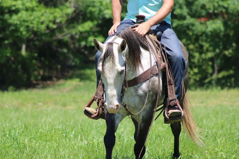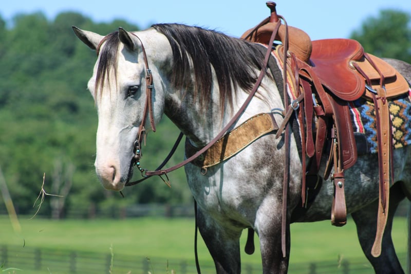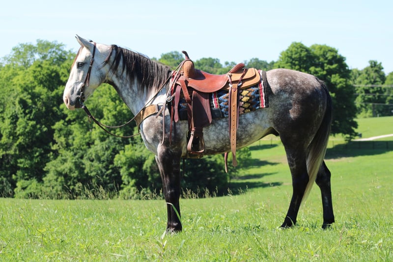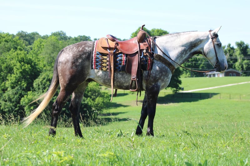 ONLINE AUCTION Place your bids at www.PlatinumEquineAuction.com Starting Bid $3500 Auction ends June 16th, 2024 Need a new saddle? Check out White Rock Saddles on our website or Facebook! Ghost is a 7 year old dapple grey quarter horse gelding! He stands 14.3 hands tall and has the look everyone wants! Ghost has been exposed to about everything you can imagine! He is a very laid back and relaxed horse even in challenging situations! He has been trail ridden tons of miles around mammoth cave national park and will go through water, over logs, and loves to climb hills! He has been ridden by many different levels of riders from experienced all the way to beginners and handles his riders the very best no matter the situation! He has a very nice slow lope, will neck rein, and will back up! He takes his leads in an arena as well as out in the open! He will come over to the mounting block and stand like a statue for mounting! Here is a gelding that will make you a perfect family type horse! He is very easy to catch and handle! If you’re looking for a horse with good size, color, and brains here he is! Don’t miss out on this opportunity! Please CALL Sammy Detweiler 270-218-1073 He is located in Priceville Ky! ONLINE AUCTION Place your bids at www.PlatinumEquineAuction.com Starting Bid $3500 Auction ends June 16th, 2024 Need a new saddle? Check out White Rock Saddles on our website or Facebook!