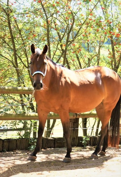 Ich suche aus absolutem Zeitmangel für mein Herzenspferd ein 5 Sterne Zuhause. Sie war noch nie krank, ist korrekt gebaut und hat ein gutes Papier, weshalb ich mir sie auch zur Zucht sehr gut vorstellen kann. Sie ist kräftig gebaut, sehr sozial in der Herde und auch zu anderen Hoftieren einfach nur lieb. Ich bin sie seit 1,5 Jahren aus Zeitmangel nicht geritten und man merkt ihr mittlerweile an, dass sie sich nach Beschäftigung sehnt. Sie ist, auch aufgrund ihres aktuellen Trainingszustandes, kein Anfängerpferd, da sie sich sich sehr an ihrem Menschen orientiert und bei entsprechender Führung auch ohne zu fragen überall mit ihm hin geht. Sie ist nie schlecht gelaunt und sehr menschenbezogen. Wer nochmal etwas Arbeit investiert, bekommt ein feines, unkompliziertes Pferd mit traumhaftem Charakter. Ich gebe sie nur an Bestplatz ab, Sie könnte auch bei mir stehen bleiben.