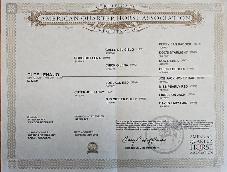 ONLINE AUCTION Place your bids at www.PlatinumEquineAuction.com Starting Bid $3500 Auction ends August 18th, 2024 Need a new saddle? Check out White Rock Saddles on our website or Facebook! If you’re looking for a big, stout, ranching and roping type horse, “Lena” is your gal! This mare is from the renowned Pitzer ranch and is sired by Poco Dot Lena. Her grandsire is the legendary “Rooster” (Gallo Del Cielo), and her papers are full of greats all the way back. On the bottom side, she boasts a lot of foundation blood like Joe Jack Red that gives her the incredible bone and foot she carries! This beautiful dun mare is very amateur friendly and has been ridden by everyone, including grandma and the kids. She’s great on obstacles and has a nice handle on her. Lena has lots of experience around the farm and on the trails. We love her ability to tackle new situations with confidence! She’s quiet and steady, but can stop on a dime or whip out a turn as fast as you’d like. Lena can spin, sidepass, drag logs & tarps, cross water and bridges with surefootedness. You won’t have to deal with any nonsense from this girl. She doesn’t get cinchy or buck with time off. She’s comfortable being ridden bareback and in a halter. Super easy to catch. Ties great. Stands for the farrier. Trailer loads perfectly. The owners have had her since she was a weanling and she’s been loved and cared for by one family. We’ve spent a lot of time working on and around Lena and can attest that she’s one special mare. She’s incredibly talented and is ready to go any direction. AQHA Ranching Heritage eligible! Can easily be registered with ABRA to show in an even wider variety of events. She’s 100% sound and just passed a PPE with no issues. No vices. Watch the video to see all this mare has to offer! For more info contact Zacharias Horsemanship Sid 715-416-1502 Located in Adair, OK. ONLINE AUCTION Place your bids at www.PlatinumEquineAuction.com Starting Bid $3500 Auction ends August 18th, 2024 Need a new saddle? Check out White Rock Saddles on our website or Facebook!