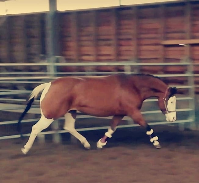 Gunnerbelle ist eine bildhübsche Quarter Horse Stute, geboren im Jahr 2015. Sie präsentiert sich in der besonderen Farbe Bay Splash (SW1 + SW2) und fällt zusätzlich durch ihre zwei blauen Augen ins Auge. Mit einem Stockmaß von ca. 147 cm ist sie kompakt gebaut und dabei korrekt und harmonisch im Exterieur. Genetisch ist sie 5-Panel n/n getestet. Charakterlich überzeugt Gunnerbelle auf ganzer Linie. Sie ist sehr lieb, menschenbezogen und zeigt sich stets freundlich sowie angenehm im Umgang. Durch ihre unkomplizierte Art ist sie einfach zu händeln und auch für Anfänger geeignet. Unter dem Sattel zeigt sie sich brav und zuverlässig, besonders im Gelände. Im täglichen Handling ist sie bestens erzogen. Sie kennt sowohl Hufschmied als auch Tierarzt, geht problemlos auf den Anhänger und ist sowohl an Herdenhaltung als auch an die Box gewöhnt. Besonders hervorzuheben ist ihre Qualität als Zuchtstute. Gunnerbelle verfügt über eine erstklassige Reining-Abstammung (Colonels Lone Gun x Roseable v. Inwhizible) und hat sich bereits als hervorragende Mutter bewiesen. Sie bringt Fohlen in sehr guter Qualität und gibt ihre positiven Eigenschaften zuverlässig weiter, sodass ihre Nachkommen sich als tolle, leistungsbereite Pferde entwickeln. Aktuell ist sie tragend für das Jahr 2026 von MS Gunners Cashflow, einem homozygoten Splash 1 Hengst. Gunnerbelle wurde geritten und besitzt eine solide Reining-Ausbildung und ist total brav im Gelände. Wird jedoch als Zuchtstute abgegeben. Sie ist ein echtes Juwel für die Zucht und eine wertvolle Bereicherung für jeden Zuchtbestand.