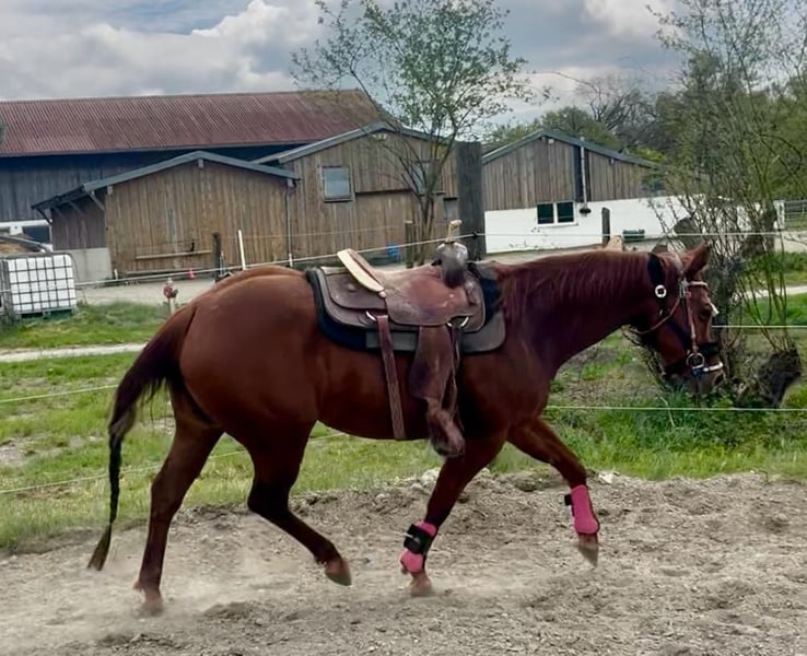 11 jährige Quarter Horse Stute sucht im Auftrag ein neues Zuhause! Das Papier lässt keine Wünsche offen! Barhuf Solide Grundausbildung Western Freizeit/Gelände Gesund (kein Ekzem etc.) 155 cm Stckm, deckt gut ab! Auch für die Zucht interessant Eine AKU kann gerne auf Kosten des Intetessenten gemacht werden! Bei ernsthaftem Interesse gerne mehr Infos/Videos etc. Unter 0179/4075376