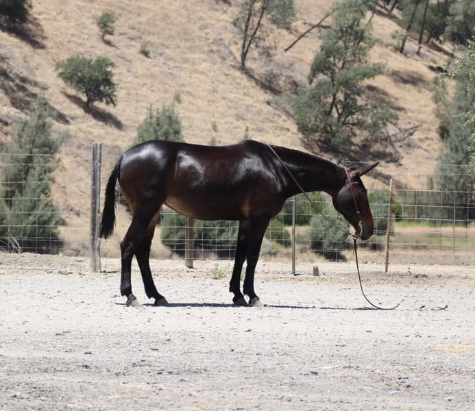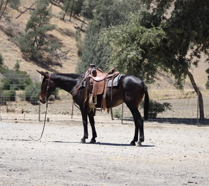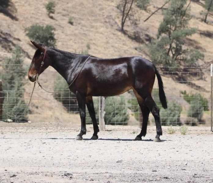 ONLINE AUCTION Place your bids at www.PlatinumEquineAuction.com Starting Bid $3500 Auction ends July 6 2025 Need a new saddle? Check out White Rock Saddles on our website or Facebook! Are you looking for a sweet and reliable riding companion? Look no further than Bella, the 11-year-old Molly mule with a heart of gold. At 15 hands, Bella is the perfect size for any rider. She’s been trained to gather and check fences, making her a surefooted and capable partner on any trail. But Bella isn’t just about work – she’s also a joy to be around. Catching and saddling her up is a breeze, and she’s always eager to please. Bella has also been trained over obstacles, making her a pro at walking over tarps and tires. And with her experience riding downtown, she’s comfortable around traffic and cars. In the arena, Bella is a dream to ride and has all the basics down. She’s even great with more sensitive tasks, like clipping and having her ears handled. If you’re in search of a first mule or simply a safe and reliable riding partner, Bella is the one. Contact Beau Mendala 831-732-9074 to come meet this great companion located in King City, CA. ONLINE AUCTION Place your bids at www.PlatinumEquineAuction.com Starting Bid $3500 Auction ends July 6 2025 Need a new saddle? Check out White Rock Saddles on our website or Facebook!
