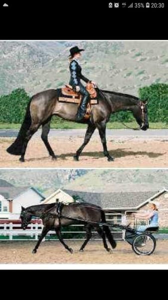 Lagegeiten fokstute Onreidebaar vanwege artritis in de rechter achterknie door een weilandongeval 5-panel N/N Heterozygote zwart Heterozygote dun Zeer vriendelijk in de omgang Vertrouwd met laden Momenteel drachtig van een hengstveulentje van DRIFTS CHIP van de 6666 Ranch bij Fuss, te koop als totaalpakket: merrie met veulen (€11.000) of ook los verkrijgbaar. Hengstveulentje: Drifts To The Future, geboren op 5 juni 2025, zwart (homozygoot zwart en homozygoot agouti). Optioneel kan de merrie worden gekocht inclusief de dekking met Commander Good Bar voor 2026. Voor meer informatie, telefonisch: +352-621-328144