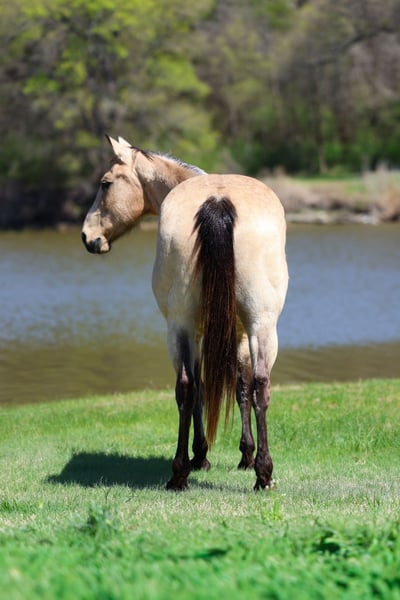 ▪️▫️◾️𝐭𝐡𝐞 𝑴𝒂𝒚 𝐒𝐞𝐥𝐞𝐜𝐭◾️▫️▪️ Happening now thru MONDAY | MAY 4th - Available EXCLUSIVELY on HorseBid's website! For more details and to register visit: www.Horsebid.com CONSIGNOR CONTACT: Triple M Ranch 469-318-1902 LOCATION: Talty, TX BREED: Quarter Horse REGISTERED: No REGISTERED NAME: Cookie Dough COLOR: Buckskin HEIGHT: 14.3 AGE: 12 GENDER: Mare 🍪Meet Cookie Dough!! A beautiful buckskin mare. 12 years old and 14.3 hands tall. She is a sweet glamorous mare that is unbelievably broke!! This mare has all the fancy bells and whistles in her training. Plus Cookie Dough is the true definition of gentle, safe, well-mannered type. Whether you’re looking for a horse for the whole family to hit the trails on, a solid broke mount to go do a days work on, or a smooth ride to play around in the arena Cookie Dough is your girl!!! She has been used around ranches her whole life, making her very experienced and versatile! She’s great if rode once a week, once a month or even once every 6 months! She doesn’t get fresh. No tune up required. She’s the kind you can just jump on and go! Cookie Dough will go absolutely anywhere you point her, through rough rocky country, steep slippery slopes, thick brush, flowing waters, busy streets of town, you name it and she will go on through it without batting an eye and she is as surefooted as can be! Cruise on down the trail with ease on her. She is not only great to ride outside, she’s an absolute blast in the arena as well! She will walk, trot, and lope both ways with ease. Smoothly picks up both her leads, neck reins perfectly, and has a good stop! Cookie Dough has been used to gather and sort cattle, and used for roping. She would excel in team penning or team shorting events. No matter what you do with her you as sure to enjoy her. 🍪Cookie Dough is a super easy keeper. Requires no maintenance of any kind. No special feed or supplements. She can go bare foot or put shoes on her. She has excellent hooves. Good with her feet/farrier. She gets along great with other horses. She is not mean to other horses or marish. You can stall her or turn her out. Doesn’t matter to her. She sells 100% sounds with no issues. She did have a pre vet evaluation done included in the pictures. If you have anymore questions about her feel free to call. We would love to visit with you about her. We can help you arrange shipping anywhere. She is up to date on all vaccinations, worming, had her teeth checked, feet. She is ready to go to her new home to be loved and enjoyed.