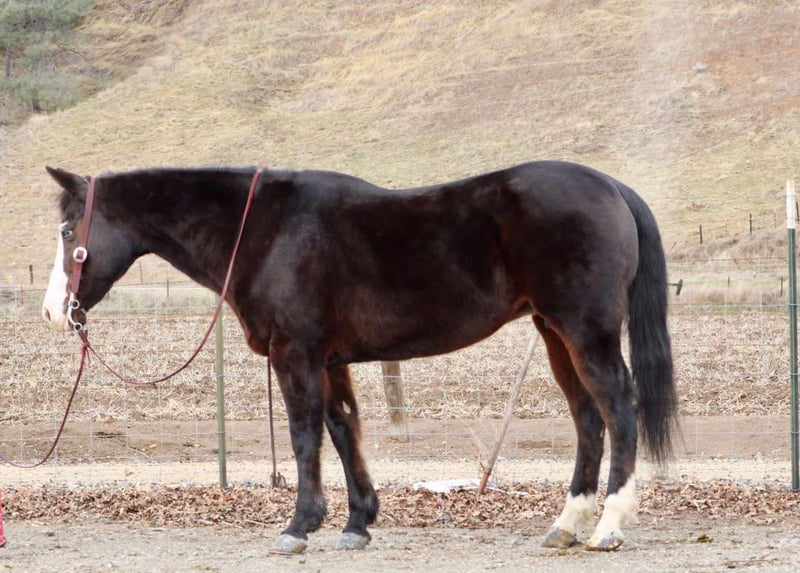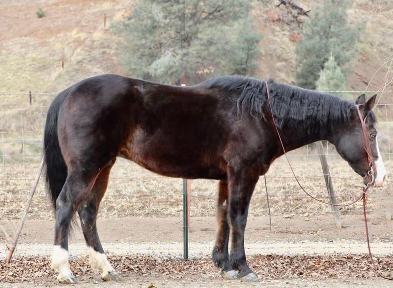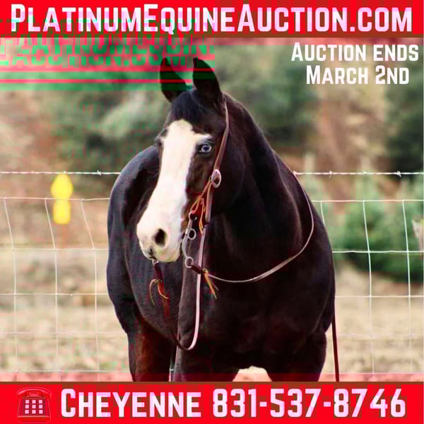 ONLINE AUCTION Place your bids at www.PlatinumEquineAuction.com Starting Bid $3500 Auction ends March 2nd, 2025 Need a new saddle? Check out White Rock Saddles on our website or Facebook! Bluebell is a head turner with her flashy dark coat, wavy mane, and stunning crystal blue eyes! This sweet mare is 14.3HH, 12 years old and a true beginners saint. Bluebell is the epitome of calm, cool, and safe. She has a more “whoa than go” way of her and is the easiest horse to get along with even for the true first time horse rider. Bell has zero spook, nothing phases this girl, and I mean nothing. You can ride her backwards, forward, and even underneath her and she will not even blink an eye. Flags, tarps, vehicles, dogs, and anything else you can think of are a walk in the park for her. Bell neck reins, knows her leads and is easy to direct. She is always patient and willing, listening to her rider. I would categorize her as a baby sitter, one you can depend on to take care of anyone riding or handling her. She handles time off and you can leave her off for months and she will never get fresh. I cannot express the level of safeness this mare is, it’s incomparable. She is excellent out on the trails, she loves water, and will cross anything in the path she’s going. She can be anywhere in the trail group comfortably, or just as content out on a ride alone. I truly feel like Bluebell will complete a family, looking for that once in a lifetime horse to trust with the kiddos, or that person that wants to pull a trusty steed out every once in a great while and take a relaxing ride. You can guarantee everyone you pull her out of her pen, you are handling one of the safest horses there is! She is located in Bitterwater, CA. Please contact Cheyenne Rey 831-537-8746 for any more info or make arrangements to come visit her! ONLINE AUCTION Place your bids at www.PlatinumEquineAuction.com Starting Bid $3500 Auction ends March 2nd, 2025 Need a new saddle? Check out White Rock Saddles on our website or Facebook!