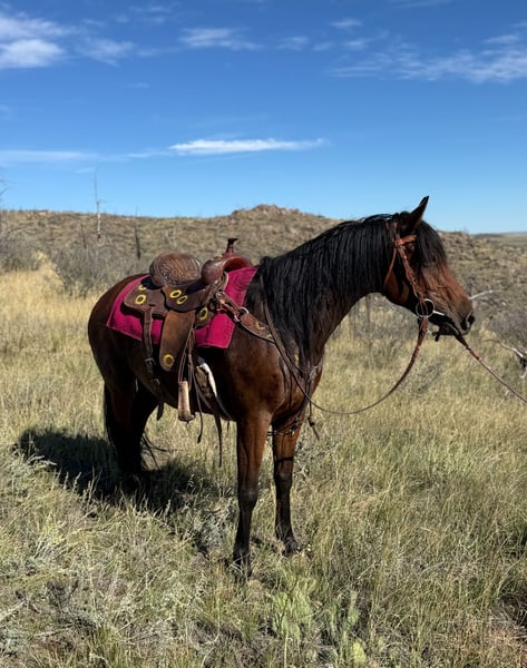 "AVAILABLE ON ONLINE HORSE AUCTION AT www DOT MagicHorseAuction DOT com BIDDING OPEN NOW thru TUESDAY | October 28TH! - BUY IT NOW AVAILABLE! *Final price will be determined on auction site* CONSIGNOR CONTACT INFO: Thea Park 970-632-3644 LOCATION: Fort Collins, CO "Meet Arielle – The Total Package! Arielle is an 12-year-old mare built like a tank, with exceptional conformation and a stunningly thick, flowing mane and tail. The first words that come to mind when describing Suki are safe and beautiful! She’s the perfect confidence-builder for beginners and inexperienced riders, offering a fun, safe, and enjoyable experience in and out of the arena. Arielle is incredibly versatile—she goes English, Western, and bareback with ease! She looks absolutely adorable in English tack, has an impressive, scopey jump, and always gives her best effort. She knows her leads, understands collection, and has a smooth, rocking-horse lope that’s as comfortable as it is effortless. Plus, she stops beautifully off voice and seat cues as well as spins and side passes! Arielle has been exposed to just about everything—she’s been ridden in town around heavy traffic and bikes, taken through the drive-thru, and even ridden bareback in just a halter around our property. She’s been roped off of, carried flags, dragged logs, and worked around tarps and other “scary” objects without a single worry. Nothing rattles this girl! She’s an absolute joy to be around—easy to catch, great for the farrier and vet, loads and unloads like a pro, and is an all-around easy keeper. Whether you’re looking for a safe partner to build confidence or a fun, versatile horse to do it all Arielle is your gal!
