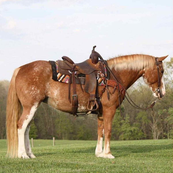 "AVAILABLE ON ONLINE HORSE AUCTION AT www DOT MagicHorseAuction DOT com BIDDING OPEN NOW thru TUESDAY | October 28TH! - BUY IT NOW AVAILABLE! *Final price will be determined on auction site* CONSIGNOR CONTACT INFO: Bar B Equine LLC 573-416-6558 LOCATION: Owensville, MO "Introducing Cedar, the horse one could only dream of having for themselves! This stunning red roan sabino 12-year-old mare stands at 15 hands tall and is a finished 3D barrel horse, ready to take you to the winner's circle at local shows. Cedar's the perfect choice for beginners and youth riders—easy going with impeccable ground and saddle manners. She self-loads, backs off the trailer effortlessly, and hauls like a dream, whether it's solo or in a group. Fun to ride and equipped with a handy neck rein and leg pressure, Cedar excels on trails, confidently crossing obstacles and embracing the great outdoors. There has never been a time I’ve dreaded being around or on this mare, everything is always such a breeze and completely hassle free. With her sweet personality and desire for attention, catching her is never a chore! Cedar is sound, requires no maintenance (even barefoot), and thrives on a simple forage diet. Plus, she stands up beautifully in any arena no matter how dry or sloppy and has no known health issues, aside from a minor scar that doesn’t bother her a lick. No need for spurs here—she's all about cooperation! Cedar rides in all sorts of variety, being a halter, bridal, war bridal or just a neck rope- this gal will do it all bareback or saddled! Cedar has been lightly jumped over small fences and fallen trees on the trails, and she has also done some ranch/trail classes through our local saddle club! Cedar is classy, safe, and honest- and has limitless opportunities. With her eye catching color and charming chrome, you’re BOUND to turn heads everywhere! This is a mare I seriously trust to carry me through war- she is determined, and full of try yet never overdoes herself. This gal would never set you in a predicament that would make you afraid or uncomfortable, and always takes things slow until you ask for more. She is an absolute dream that I am so grateful I’ve been able to enjoy! Cedar is not barn, trailer, buddy, gate, anything sour- she will walk right in and out of that arena like she’s carrying a baby. She is extremely user friendly and will work off of neck rein, leg pressure, or a light plow rein- making her incredibly enjoyable for all level riders! Whether you’re looking for a partner to enjoy the trails with, a horse the whole family can enjoy, something to show you the ropes of the show world, or a step up barrel horse for you or your kiddos- Cedar has you covered in more than just one aspect! I really can’t say enough good things about this mare, and could ramble on and on about her for days on end- but I’ll just end by saying that this mare has done us wonders, she makes every horse task less chore-like, less stressful- she gives the joy in the simple things. She really makes you grateful for good horses, and we’ve been incredibly over the moon grateful for her!