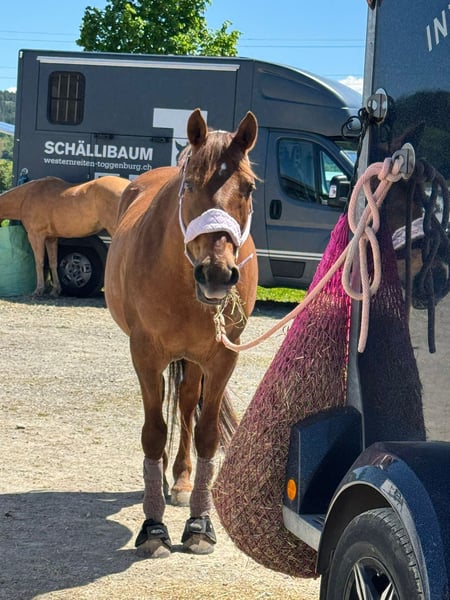 Wegen Zeitmangel zu verkaufen. America (Amy) ist eine hübsche liebenswerte 12 Jährige Quartermix Stute. Sie kam vor ca 2 Jahren zu mir als verängstigtes Pferchen welches total introvertiert war. Wir haben sehr viel am Boden mit ihr gearbeitet um das Vertrauen zwischen Mensch und Pferd wider zu stärken. Mittlerweile besitzt sie eine gute Basic unter dem Sattel und lässt sich auch problemlos von Kindern reiten die schon fortgeschrittener sind. Sie zeigt sich motiviert und lernbereit jedoch hat sie Mühe wenn sie einige Tage frei hat. Ich wünsche mir für sie einen Menschen der sie so nimmt und liebt wie sie ist und ihr weiterhin die nötige Zeit gibt um zu wachsen. Hat sie erst das Vertrauen geht sie mit einem durch dick und dünn. Amy ist nicht für Anfänger geeignet da sie eine klare Führung braucht und doch ein gutes Go hat. Auf dem Platz wie auch im Gelände. Platz vor Preis kein Notverkauf!!