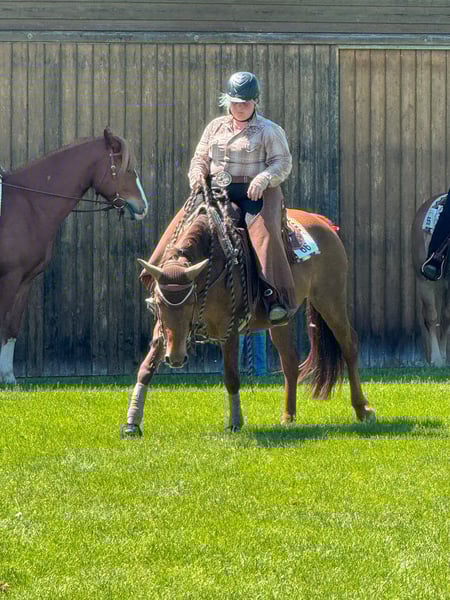 For sale due to lack of time. America (Amy) is a lovely, charming 12-year-old Quarter Mix mare. She came to me about two years ago as a nervous little horse, completely introverted. We worked extensively on the ground to rebuild the trust between us. Currently, she has a solid basic training under saddle and can be ridden comfortably by children who are already more advanced. She is motivated and eager to learn, but she can struggle a bit if she has several days off. I am looking for a person who will accept and love her as she is and who will give her the time she needs to continue growing. Once she trusts her handler, she will stand by you through thick and thin. Amy is not suitable for beginners, as she requires clear leadership and a confident rider, both on the arena and in the field. Place before price Not a desperate sale!!