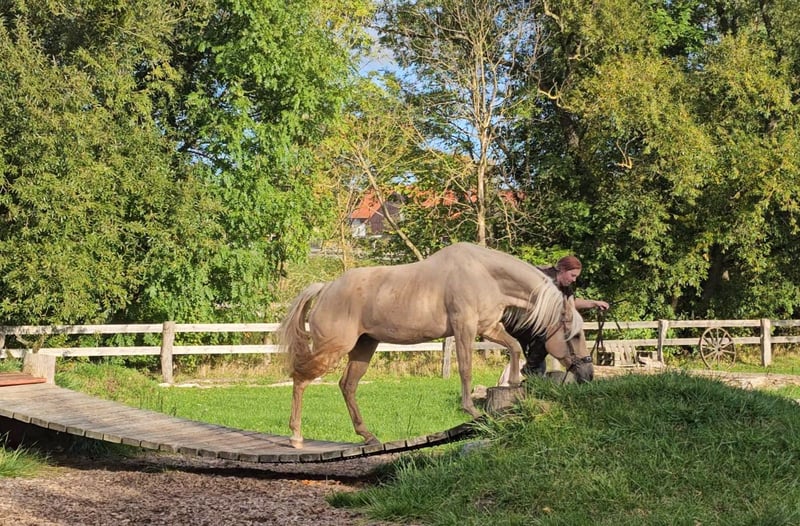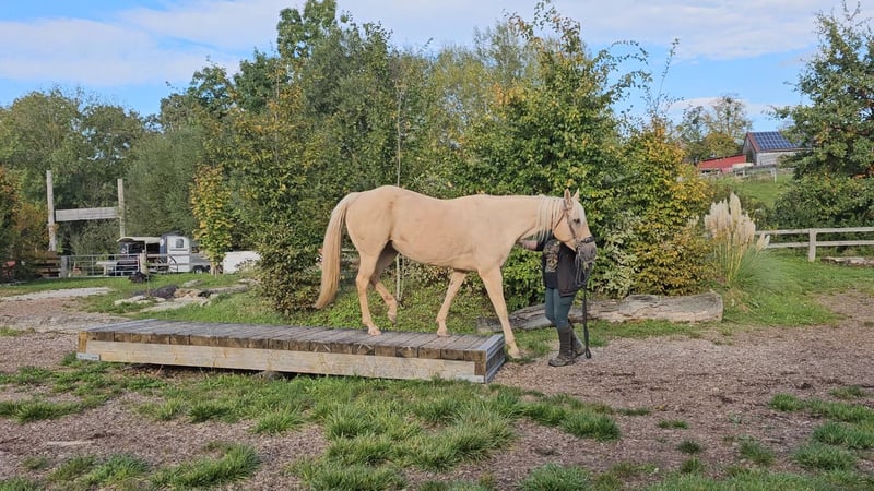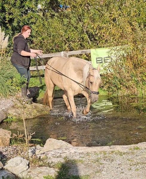 Pearl ist eine schöne QH Stute, die als Fohlen mit 8,15 bewertet wurde. Ihre Tochter von Dunits Eternal Flame wurde mit 82,68 ebenfalls 1A Prämienfohlen. Pearl ist vom AQHA Champion CL Silent Badger aus einer Dun Commander Stute. Pearl ist eine freundliche, menschenbezogene Stute mit sehr viel " will to please ", die gerne gekrault wird, dabei aber nicht aufdringlich wird. Sie wurde 4 jährig freizeitmäßig angeritten und geht 2 -3 mal pro Woche gerne ins Gelände. Pearl sucht wegen Krankheit des Besitzers ein schönes neues Zuhause. Privatverkauf, nur an Privatperson.