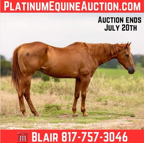 ONLINE AUCTION Place your bids at www.PlatinumEquineAuction.com Starting Bid $3500 Auction ends July 20th 2025 Need a new saddle? Check out White Rock Saddles on our website or Facebook Betty is a 15.1H, 15 yr old sorrel mare and is an absolute ranch horse deluxe for ANY age or ability! Betty is a finished head horse, has been used extensively on the ranch to work cattle, and has done countless play days. She was the kids ranch horse for years and now they are ready to go on to rodeo on higher caliber horses. This mare is an absolute doll. She is one you can trust anyone on, she’s absolutely gentle all the way around, has ZERO buck bolt or rear and only ever aims to please. Betty is BROKE broke broke, neck reins fancy and rides like a good ranch horse should. She moves off leg and is the kind you can side pass, open gates and do the whole shabang on. She has zero spook or watchyness and handles all new things with ease. She comes running when you call her from the pasture and NEVER gets fresh with time off. Betty would be the perfect fit for anyone looking for a kid/novice/beginner/old lady ranch horse to use on or she’d fit any trail rider/pleasure rider looking for a safe horse with buttons to make the ride more fun! She will take care of anyone. If you can hold the reins, you can ride her. Betty will truly be a blessing in anyone’s life. She would also make a great playday horse for kids that want to get into rodeo as she knows all the events. She loads, leads, bathes and ties great and is 100% gentle all the way around. We can’t find one vice to this mare, she really is exceptionally broke and someone is going to get a fun, SAFE mount! Go to her website page northtexashorsecompany.com/betty for more pictures and footage! Please call Blair with North Texas Horse Company for more info at 817-757-3046. We are located in Weatherford, TX and can help arrange affordable shipping to anyone!! ONLINE AUCTION Place your bids at www.PlatinumEquineAuction.com Starting Bid $3500 Auction ends July 20th 2025 Need a new saddle? Check out White Rock Saddles on our website or Facebook
