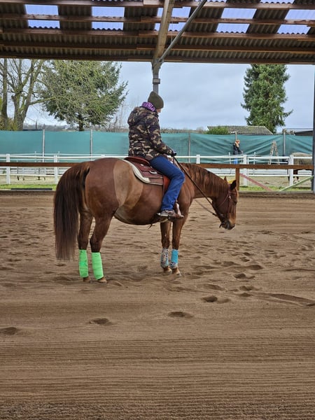 American Quarter Horse mare, born in 2008, with papers. Sired by Hollywood Dun It / Colonel Freckles. Well-trained and ridden, not suitable for beginners. Very gentle in handling and socially compatible. Healthy and has produced three wonderful foals so far. Holly is being offered as a rideable broodmare. Only to the best hands. (Negotiable price)