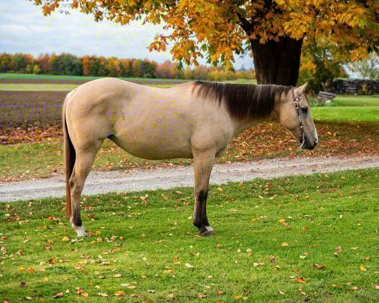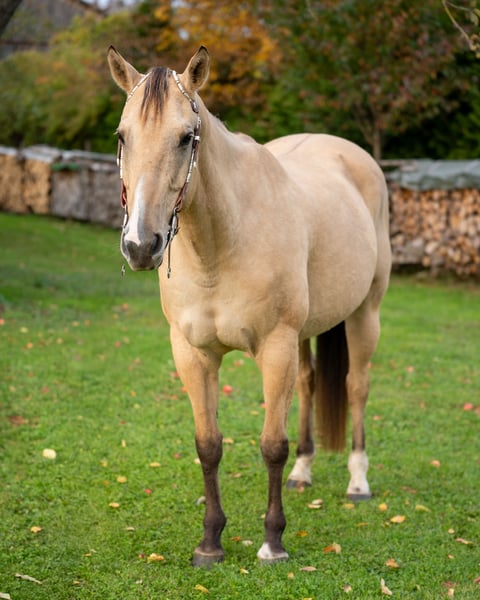 For sale is a 2007-born Quarter Horse mare named HV Silver Wood. She is familiar with arena lessons, enjoys trail obstacles, loves long rides in the countryside, and is generally enthusiastic about many activities. She has good basic musculature, clear legs, and even hooves. However, she is somewhat sensitive, which is why she has been shod in the past or, mostly barefoot, is ridden with hoof boots. She is kept in an open stable in a herd, which we also wish to continue for her. We are looking for a loving home and a new owner who will spend a lot of time with her and simply enjoy their time together! We want her to experience many more wonderful adventures and to be regularly exercised to keep her fit, especially in leisure riding with plenty of variety. However, prior experience is necessary, as she is a spirited mare that requires clear and consistent leadership. She is only sold to a suitable private home and not to riding schools (constant rider changes are not suitable for her). As a broodmare, she is also suitable and has already had a foal without any issues. She is regularly dewormed and vaccinated. Please feel free to contact me with any further questions.