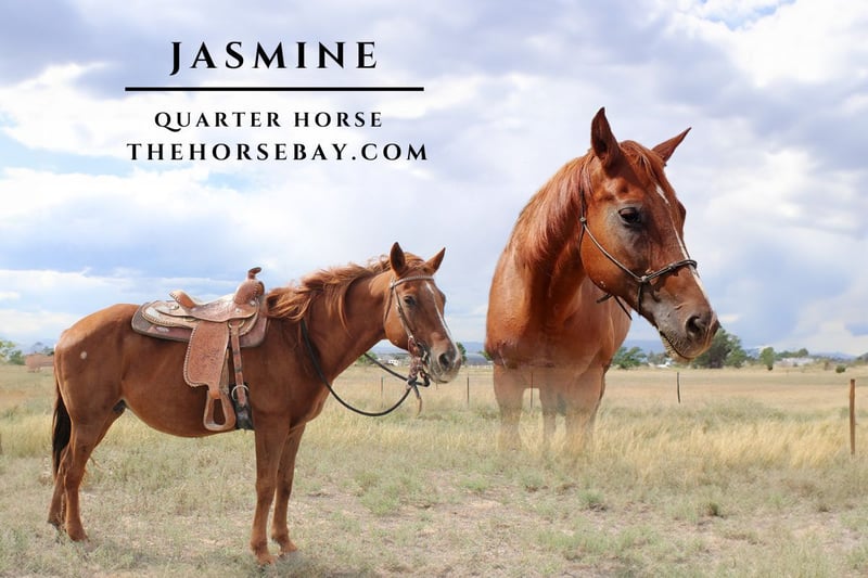 OPEN BIDDING ON THEHORSEBAY,COM. SALE ENDS ON 10/01 @ 4:40PM CT. More information is available on the website, including an UTD vet inspection, Coggins, video, images, and the owner's contact information to ask questions, request information, or make arrangements to come to visit. Meet Jasmine! She is a 16-year-old Quarter horse that stands 15.3 h, is big boned, and has solid feet. She has a beautiful thick mane and tail. She is an easygoing, sweet mare anyone can get along with. She is the perfect family horse and is super broke. She has absolutely no spook! We have yet to see her even flinch at anything! She is a point-and-go trail buddy. She rides in a group or goes out alone. She is traffic-safe and crosses water, logs, and bridges. She’s good with dogs, tarps, flags, etc. She has a nice walk, smooth jog, and good lope. She stands quietly for tacking and untacking, mounting, and dismounting. She easily loads on a trailer, backs off quietly, and hauls great. She stands excellent for fly spray, baths, the vet, and the farrier. She gets along great with other horses and comes running from the pasture. If you’re looking for a truly safe and quiet horse that you can trust, she’s it.