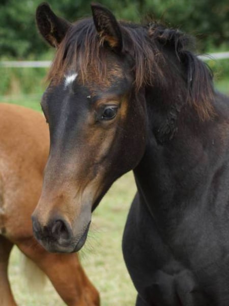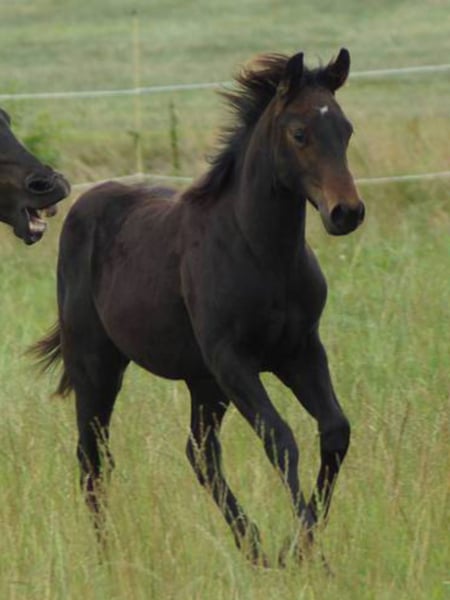 Jacs Electric Smoje aka Lucie ist ein wunderschönes Stutfohlen vom erfolgreichen Reininghengst A Vintagw Smoke. Er ist triple crown winner mit einer LtE von über 600000 USD. Lucies Mutter ist eine direkte Jacs Electric Spark Tochter x Hollywood Dun It, die aufgrund riner Verletzung nue geshowed wurde. Lucie ist sehr korrekt gebaut mit kräftigem Fundsment in der Traumfarbe schwarzbraun. Ihre Bewegungen sind sehr athletisch und sie zeigt spielerisch großes Talent für Stopps, Turns und Galloppwechsel. Sire: A Vintage Smoke Dam: Dun It In Sparkles by Jacs Electric Spark / Hollywood Dun It 5 panel N/N, Imm N/N Nrha Germany und Euro eingezahlt Unsere Fohlen wachsen im Herdenverbund mit Fohlengesellschaft auf und sind regelmäßig entwurmt und dem Hufschmied vorgestellt. Mehr Info unter www.brallentin-quarterhorse.de