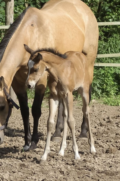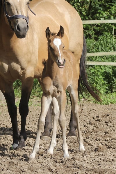 Sweety - bezaubernde Quarter Horse Stute, 2025 geboren mit einem Endmaß von 148 bis 150 cm, mit interessanter Abstammung. Sie überzeugt durch ihr korrektes Gebäude, ihre ausgewogene Bemuskelung und ihren Charakter. Sie wächst in einer kleinen Stuten- und Fohlengruppe auf großen Flächen auf, ist gut sozialisiert und kennt Tierarzt sowie Hufschmied. Bei Abgabe ist sie altersgemäß geimpft und entwurmt. Ihr sanftes, freundliches Wesen macht Sweety sehr liebenswert. Sie ist sehr menschenbezogen, verschmust, neugierig, offen und interessiert. Das Jungpferd ist leicht im Handling, gelassen und lernwillig - ideal für alle, die ein zuverlässiges und angenehmes Pferd suchen. Ihre Bewegungen, ihr Charakter und ihr Gebäude überzeugen auf ganzer Linie. Hancock meets Cowhorse - ein gelungener Outcross, der wirklich überzeugt. Sie ist geeignet für Sport, Turnier und Freizeit und wird mit AQHA-Papieren sowie einer klinischen AKU, die im Rahmen des Verkaufs von der Züchterin in Auftrag gegeben wird, abgegeben. Sie wird ein solides Ranch-Pferd werden.