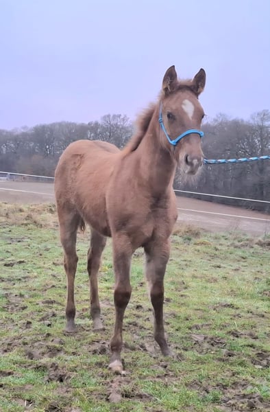 Sun O Lena Chexinic ist eine bildhübsche Quarter Horse Stute, geboren am 20.07.2025, mit einem geschätzten Endmaß von ca. 150 cm. Sie ist red dun und homozygot dun, die AQHA-Papiere liegen vor und sie ist in die DQHA einbezahlt. Die Stute überzeugt durch ihr korrektes Gebäude, ihre tolle Farbe, ihre gute Entwicklung und eine ausgewogene Bemuskelung. Sie ist gesund, regelmäßig entwurmt und wächst im Herdenverband auf. Tierarzt und Hufschmied sind ihr bekannt. 5-Panel n/n. Sie ist halfterführig und kennt das Fohlen-1×1. Charakterlich ist sie sehr lieb, menschenbezogen und brav im Umgang. Sie ist reaktionsstark, bringt ein tolles Temperament mit, ist sehr athletisch, möchte immer gefallen und lernt schnell, was sie zu einem spannenden Nachwuchspferd macht. Mit ihren in Europa seltenen Cutting-Pedigree ist sie ein erstklassiges Prospekt für Sport, Turnier und Zucht und sollte mit ihrem Potenzial für Cutting später unbedingt als Showpferd gefördert werden. Sie ist eine Enkelin von Doc O Lena und Bueno Chexinic. Eine junge Stute mit viel Qualität, Ausstrahlung und Leistungsbereitschaft, die sowohl für ambitionierte Reiter als auch für Züchter äußerst interessant ist.