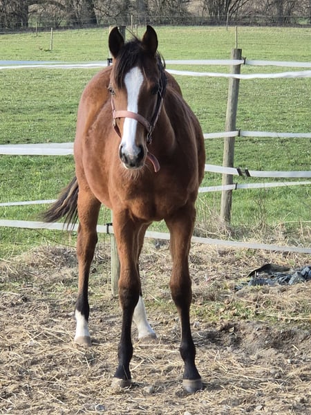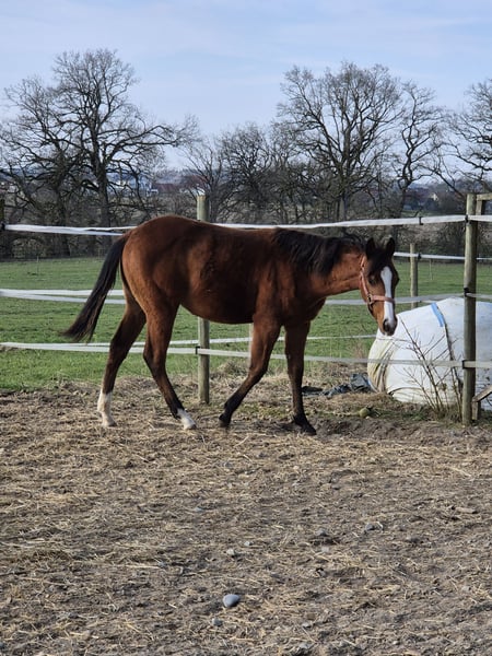 Ich biete meine Quarter Horse Stute zum Verkauf an. Die Kleine ist 11 Monate alt. Da ich einfach keine Zeit für Sie finde habe ich mich entschlossen die Kleine zu Verkaufen. Sie ist momentan noch sehr schüchtern aber die Neugierde siegt :-). Sie ist Halfterführig und geht mit spazieren. Ihre Papiere sind aktuell beantragt bei der AQHA . Sie wird im April geimpft und ist regelmäßig entwurmt wurden und ist gechipt.