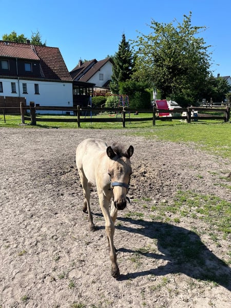 Bärbel – 1-jährige Quarter Horse Stute in Dark Buckskin mit Top-Abstammung. Ein echter Hingucker mit Charme, Ausstrahlung und Qualität! Unsere Bärbel ist eine bildschöne, dunkel buckskinfarbene Jungstute mit dem gewissen Etwas. Schon jetzt zeigt sie, was in ihr steckt – eine Traummaus mit Ausdruck, harmonischem Körperbau und klarem, freundlichen Charakter. ✅ Alter: 1 Jahr ✅ Farbe: Dark Buckskin ✅ Rasse: Quarter Horse ✅ Abstammung: Vater: SR Hollywood Dundee (Hollywood Dun It-Linie) Mutter: SR Reminics Melinda (Reminic gezogen) Mit ihrer exzellenten Abstammung vereint Bärbel bewährte Reining-Genetik – Hollywood Dun It trifft auf Reminic – und bringt damit alles mit, was man sich für Sport, Show oder Zucht wünscht. Sie wächst artgerecht auf, ist halfterführig, neugierig und menschenbezogen. Egal ob du einen zukünftigen Sportpartner, ein Zuchtjuwel oder einfach ein Pferd mit Ausstrahlung suchst – Bärbel zieht alle Blicke auf sich! Bei Interesse und für weitere Informationen freuen wir uns auf Ihre Kontaktaufnahme.
