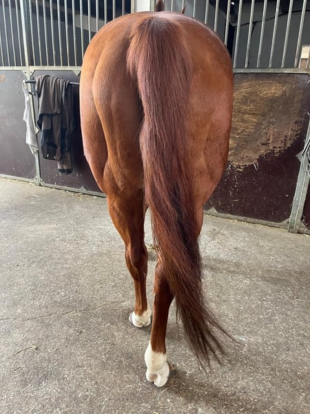 Tinos Fawny - een prachtige, compacte en correct gebouwde Quarter Horse merrie (geboren in 2002, schofthoogte ca. 149 cm) met een heel bijzonder karakter. Vanwege veranderde levensomstandigheden zoekt ze nu met pijn in het hart een liefdevol forever home bij mensen die haar met rust, geduld en waardering benaderen. Fawny is zachtaardig, vriendelijk, zeer rustig en absoluut mensgericht. Ze toont zich altijd kalm, cool en zenuwsterk in omgang – of het nu gaat om de hoefsmid, dierenarts of het laden in de trailer. Ze kent boxenstallen met dagelijks weidegang en voelt zich ook in een gemengde kudde op haar gemak. Haar liefdevolle, ongecompliceerde karakter maakt haar tot een aangename partner in elke dagelijkse situatie. Zowel onder het zadel als vanaf de grond is Fawny makkelijk en fijn te rijden. Ze wordt momenteel gereden door een 15-jarig meisje en toont zich daarbij alert en gemotiveerd. Ze houdt ervan om in een vlot tempo te werken en brengt van nature een actieve, voorwaarts gerichte energie mee – zonder onrustig te worden. Ruiters met gevoel en fijne hulp zullen veel plezier aan haar beleven. Vanwege haar gevoeligheid voor hulpen is ze echter niet geschikt voor onzekere of onervaren ruiters. Fawny is veelzijdig getraind als allrounder, kent trailopdrachten en is zowel in de grond- als longeerwerk actief betrokken. Ze is absoluut veilig in het terrein en verkeer en geniet van rustige buitenritten, evenals gerichte training op de baan. Ze is ingeschreven in stamboek II van de DQHA en heeft al twee gekeurde veulens voortgebracht. Qua gezondheid is ze topfit, afgezien van een chronische hoest die haar in het dagelijks leven en tijdens het rijden nauwelijks beperkt. Deze prachtige merrie zoekt een liefdevol thuis waar ze verder gestimuleerd wordt, maar ook gewoon paard mag zijn. Ze is niet voor iedereen, maar juist voor iemand die een diepere band met zijn paard zoekt en de fijne karaktereigenschappen van een gevoelig, eerlijk paard weet te waarderen.