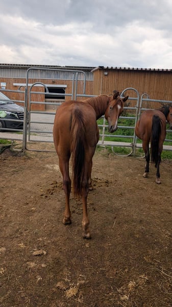 Kitty Metallic Cat - eine äußerst vielversprechende Quarter Horse Jährlingsstute, 4.2024 geboren, mit einem geschätzten Endmaß von 150 cm, mit erstklassiger Abstammung - ein echtes Juwel für Show, Freizeit und Zucht! Dieser Youngster überzeugt mit einem korrekten Gebäude, viel Fundament und guter Bemuskelung. Sie wächst artgerecht im Herdenverband auf und kennt sowohl Offenstallhaltung als auch Weidegang. Charakterlich lässt Kitty keine Wünsche offen: Menschenbezogen, freundlich, aufgeweckt, neugierig und verschmust. Es wird regelmäßig gehandelt, kennt das Fohlen-1×1, lässt sich ruhig anbinden und zeigt sich stets kooperativ im täglichen Umgang. Ein echter Hingucker mit tollem Bewegungsablauf - ein Top-Prospect für den Cutting Sport! Kitty bringt alle Voraussetzungen mit, um sich voraussichtlich zu einem erfolgreichen Showpferd oder zuverlässigen Freizeitpartner zu entwickeln - auch als Zuchtpferd sehr interessant. Sie ist eine Enkelin von Metallic Cat und Smooth As A Cat. Ihr Vater ist der erfolgreich geshowte Titanium Toy. Aufgrund einer Bestandsreduzierung wird dieser Schatz schweren Herzens abgegeben.