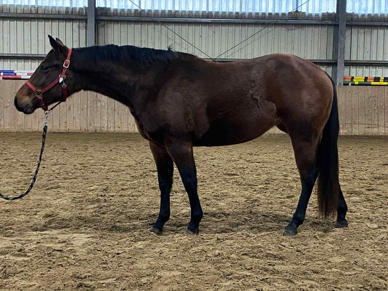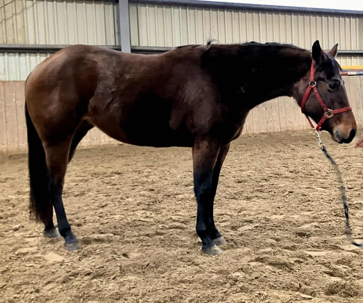 Sally Cant Wait - eine bildhübsche Quarter Horse Stute, geboren am 18.04.2023, in der Farbe bay und mit einem aktuellen Stockmaß von 140 cm. Sie ist ein echter Eyecatcher mit toller Farbe, korrektem Körperbau und einem sehr schönen, stabilen Gebäude. Sally ist altersgerecht entwickelt, gesund und es liegen Röntgenbilder ohne Befund vor. Sie wuchs in einer gemischten Jungpferdeherde auf und kennt sowohl Offenstall- als auch Boxenhaltung. Sie wurde stets hochwertig mit gutem Mineral- und Kraftfutter versorgt. Tierarzt und Hufschmied sind ihr bestens vertraut und sie zeigt sich im täglichen Umgang ausgesprochen brav. Sally besitzt einen lieben, sanften und menschenbezogenen Charakter. Sie ist gutmütig, verschmust, zutraulich und wird regelmäßig gehändelt. Das Jungpferde-ABC, Putzen und Hufegeben bereiten ihr keinerlei Probleme. Sally ist eine tolle Bewegerin und ein sehr interessantes Nachwuchspferd, das später besonders im Reining-Showbereich großes Potenzial mitbringt. Aufgrund ihrer erstklassigen und sehr spannenden Abstammung eignet sie sich auch hervorragend für die Zucht. Sally ist eine Tochter vom erfolgreichen Tricked Out Spook. ein Spooks Gotta Gun Sohn. Ihre Mutter ist eine Smart Spook Tochter. Sie wird mit AQHA-Papieren und Equidenpass abgegeben und ist zudem NRHA European nominiert. Eine vielversprechende junge Stute mit Charme, hervorragender Abstammung und besten Voraussetzungen für Sport und Zucht.