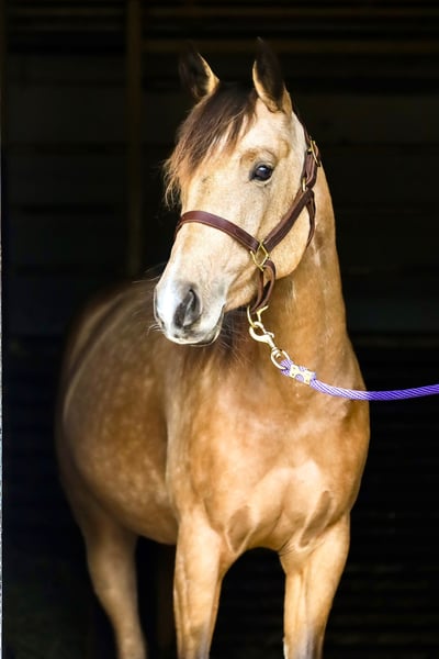Bildhübsche Quarter Horse Stute mit bestem Reiningblut in Sonderfarbe Buckskin. Baty stammt aus eigener Nachzucht und sucht nun ein gutes neues Zuhause. Aktuelles Stockmaß ca. 148 cm. Baty ist äußerst liebenswert und talentiert. Sie wurde schonend gestartet, läuft alle Grundgangarten sicher unter dem Reiter und besitzt eine solide Grundausbildung. Sie zeigt schöne Bewegungen und ist sicher auch interessant für die Ranchridingklassen. Baty wurde regelmäßig entwurmt, geimpft und ist schmiede- und verladefromm. Sie ist im EWU Jungpferdeprogramm eingezahlt. Beide Eltern 5 Paneltest n/n. Sie wuchs artgerecht im Herdenverband auf und ist im Handling äußerst umgänglich. Röntgenbilder vorhanden, Preis der Qualität entsprechend.
