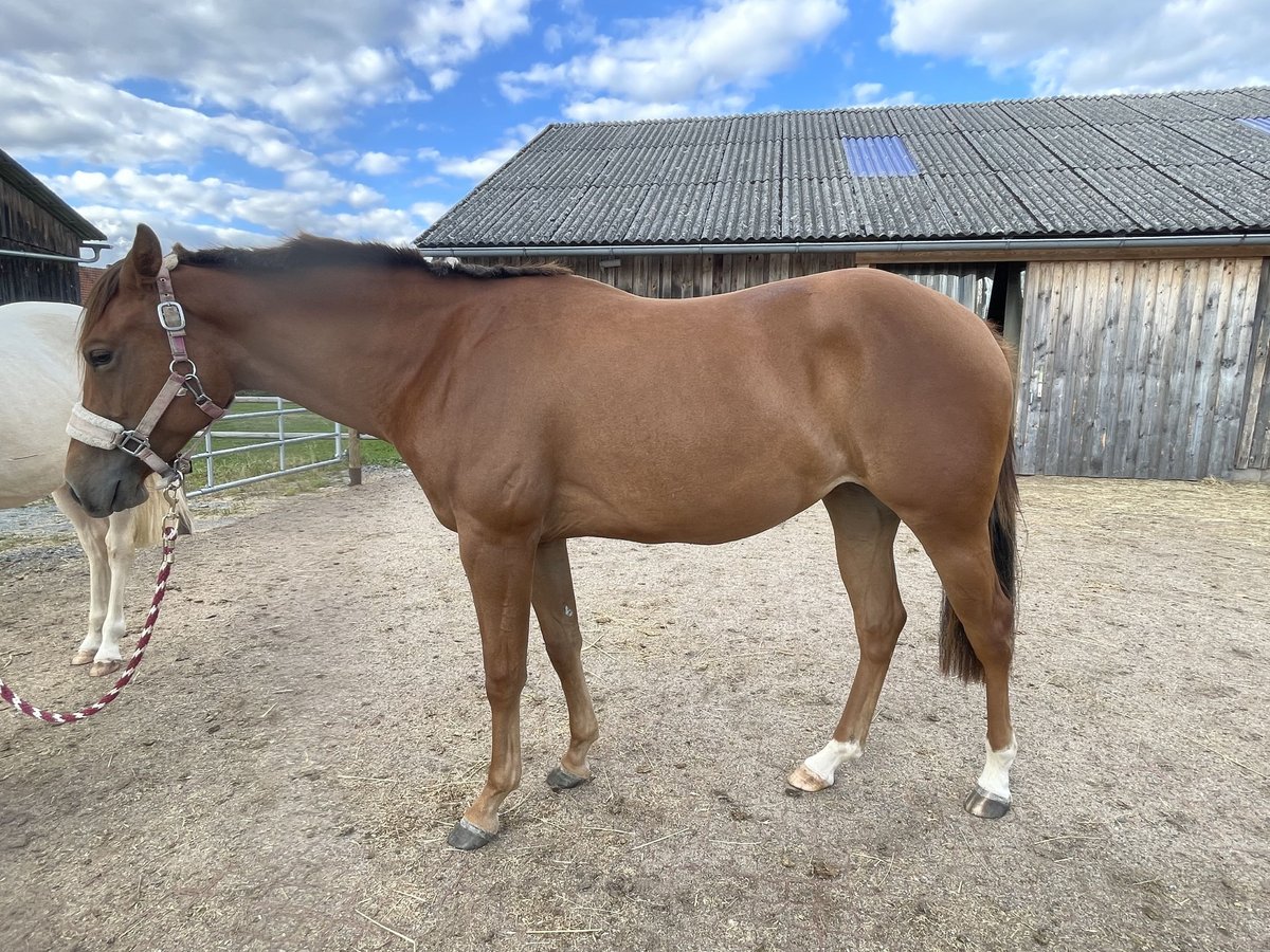 **Advertisement for sale: American Quarter Horse mare** For sale is a promising American Quarter Horse mare, born in 2023. This young chestnut mare already impresses with her great talent in reining. **Characteristics:** - Breed: American Quarter Horse - Gender: Mare - Year of birth: 2023 - Color: chestnut - Height: 150 cm - Discipline: Reining This mare is a real eye-catcher and has the best prerequisites for a successful future in the sport of reining. She is friendly, willing to learn and already shows a high willingness to perform. If you are interested, we look forward to hearing from you!