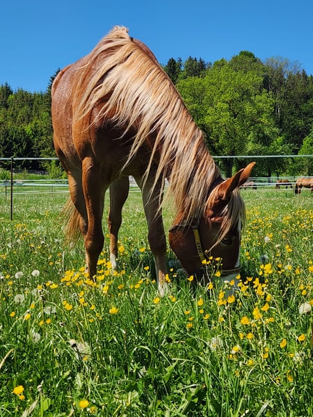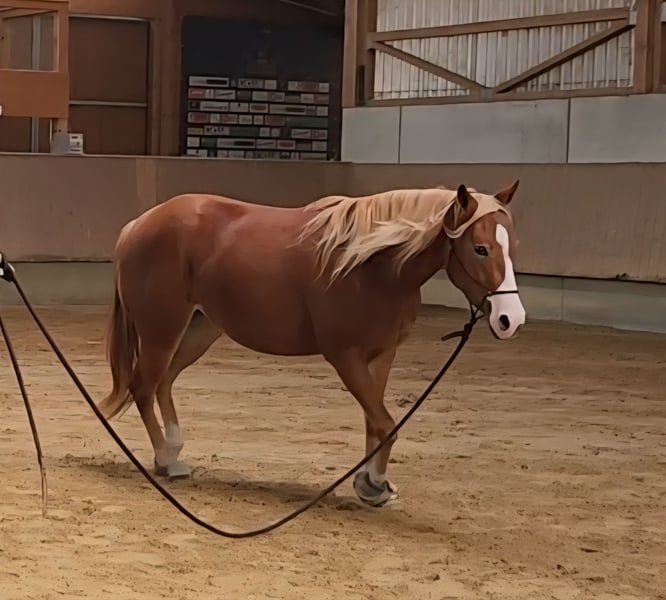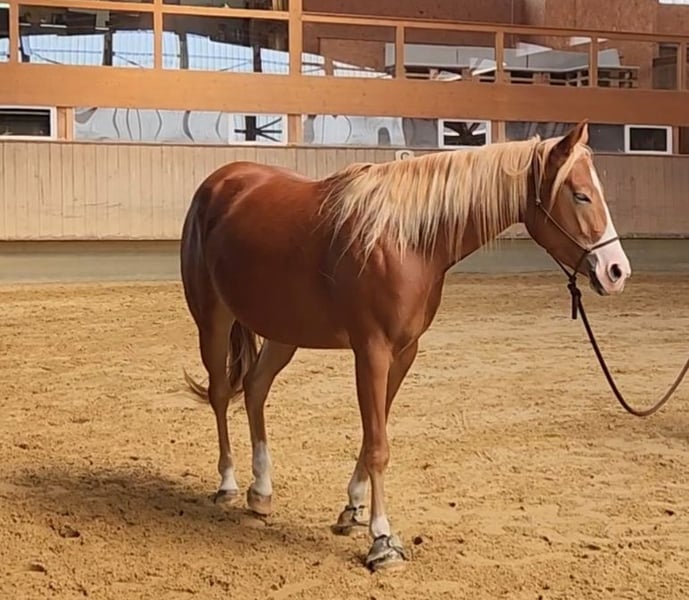 Absolute Ausnahmepferd doppeltregistriert QH/PH, mit kleinem Befund wegen Auswanderung nach Übersee zu verkaufen. Wir haben lange Zeit professionell mit Pferden gearbeitet, Fine ist jedoch mein privates Pferd. Hunderte Pferde bin ich geritten, keines war wie sie! So brav, so entspannt, so kuschelig und schlau, so rittig, so menschenbezogen, so immer bei einem. Ein absolutes Traumpferd. Dazu auch noch wunderschön mit langer blonder Mähne und zwei unterschiedlichen Augenfarben. Korrekt gebaut ist sie auch noch. Fine geht nur an Bestplatz, nicht an Reitschulen, nicht an Anfänger. Fine hat in ihrem Leben noch nie etwas Schlechtes erlebt, ist immer optimal gehalten und bewegt worden. Sie kennt keinen Anfänger, keinen falschen Handgriff. Sie hat ein unfassbares Vertrauen in Menschen! Das soll auch so bleiben. Sie hat 5 Monate schonenden Profiberitt hinter sich, wurde nie überfordert und es wurde nur das gemacht was sie angeboten hat. Ich wollte sie nicht verheizen, nicht auf Futurity vorstellen, lediglich ein gut ausgebildetes Pferd haben das willig mitmacht :-) Sie wechselt, dreht und stoppt in Ansätzen und kann natürlich die Basics die dafür nötig sind (Seitengänge, Kruppe verschieben, Schulter verschieben etc). Sie hat sich einfach immer lieb angeboten und was sie einmal verstanden hat, macht sie in Perfektion und mit Begeisterung! Sie ist butterweich zu sitzen und sehr nachgiebig. Auch die Bodenarbeit macht sie brav und motiviert Sie schläft beim Schmied fast ein und ist im Hänger absolut entspannt. Es gibt nichts, was dieses Pferd falsch oder anstrengend macht. Sie hatte eine geringgradige Ton Diagnose, die durch eine Infektion erworben wurde und nicht genetisch war. Die Muskulatur ist noch vollständig intakt. Sie hat im letzen Monat eine Nerventransplantation bekommen, diese wunderbar überstanden und wird jetzt schon wieder am Boden antrainiert. Sie wird vollständig genesen, die Nerven brauchen nur Zeit um anzuwachsen. Ich kann mir sie prima vorstellen als Partner für eine ambitionierte Freizeitreiterin die mal einen Kurs, mal ein Hofturnier reiten möchte aber auch mal gerne ins Gelände geht. Ich sehe sie nicht im Sport. Auch in der Zucht könnte ich sie mir super vorstellen. Der Mind wäre toll zu vererben. Sie kann gerne mit Zubehör verkauft werden. Das ist absolut Top, Highhorse, Schutz Brothers, Triple W, das Beste vom Besten :-) Preis des Zubehörs ist verhandelbar. Wenn du Fine kennenlernen möchtest, darfst du dich gerne melden. Weiter Bilder und gerittene Videos bekommst du natürlich gerne auf Anfage.