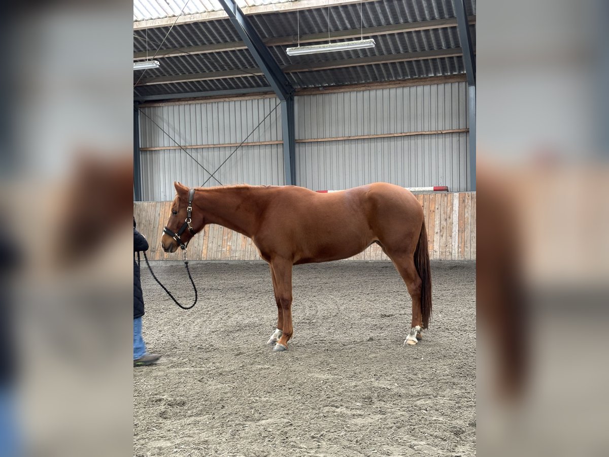 “Andrea,” *Better Call Me Baby*, is a promising AQHA mare born in May 2023 with great potential. She was bred under the DKQHA QSP program and is sired by Good Better Best, whose offspring dominate the hunter classes in the USA. Andrea currently measures approximately 160 cm and is expected to reach a height of around 165 cm. She was purchased at 6 months old and has been handled daily ever since. Andrea is very quick to learn and works well on the lunge, where she already has a solid foundation. In addition, she has begun basic showmanship training, including setup and turns. Backing and preparation for it have not yet been started due to pregnancy. She has been well cared for in every way, including dental care, vaccinations, and farrier visits, and is currently barefoot. Andrea is accustomed to living outside 24/7 during the summer months. In daily handling, Andrea is easy and uncomplicated despite being in her teenage phase. She clearly shows all-around potential, but also has strong breeding potential for hunter classes with her beautiful, long, and expressive gaits. Andrea is only for sale due to lack of time.