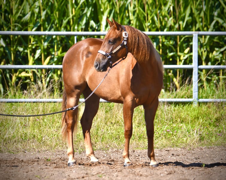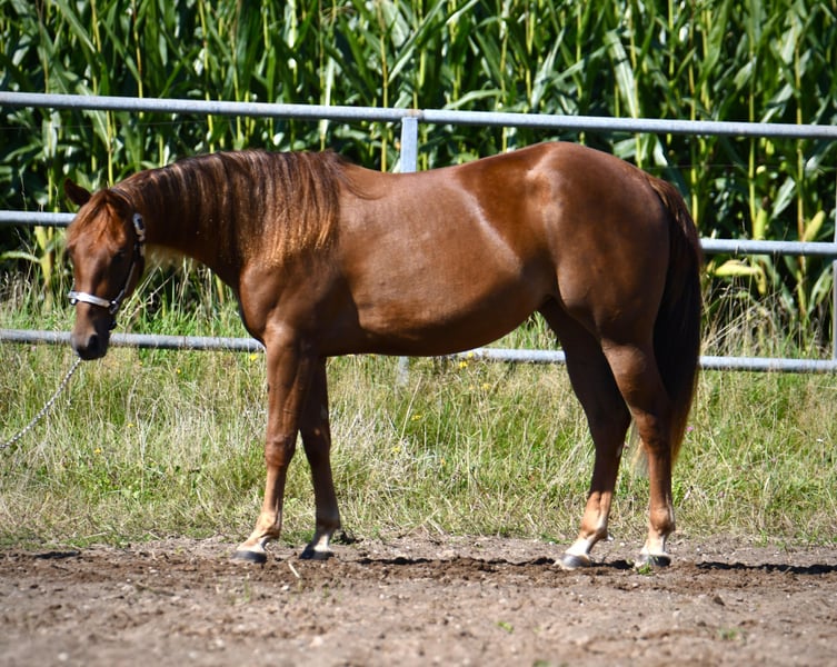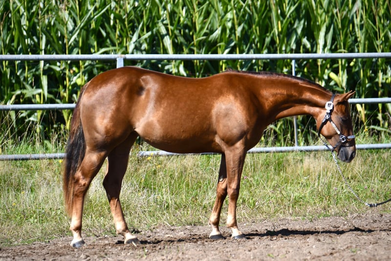 2023 QH Stute von Walla Whiz Crome (LTE $ 67.000+, PE $ 270.000,-) aus der Hot Ice Surprise (PE ~ $ 35.000,- LTE $ 2.700,-). Psycho Whiz Crome ist das dritte Fohlen aus der Stute Hot Ice Surprise. Beide Halbgeschwister Tinsels Icecube und Psychokiller laufen erfolgreich im internationalen Open Sport und konnten bisher eine Gewinnsumme von ca $ 35.000,- erreichen. Vater ist der zur Zeit dominierende europäische Vererber Walla Whiz Crome. Er hat mittlerweile offspring earnings von $ 270.000,- . Die Stute wurde im April 2025 unterm Sattel gestartet und zeigt sich sehr talentiert.