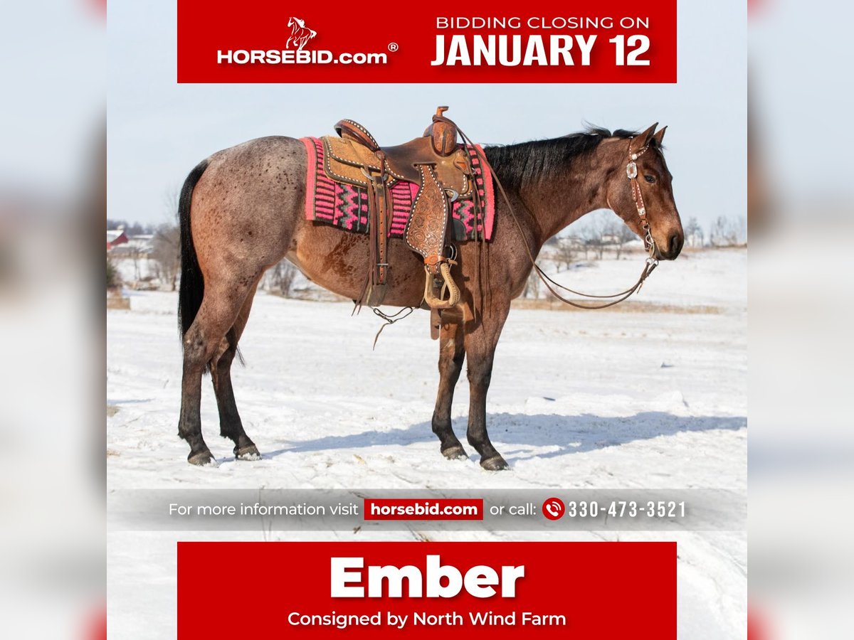 ♦️𝐍𝐄𝐖 𝐘𝐄𝐀𝐑'𝐒 𝑬𝒙𝒕𝒓𝒂𝒗𝒂𝒈𝒂𝒏𝒛𝒂♦️ Happening now thru MONDAY | JANUARY 12th - Available EXCLUSIVELY on HorseBid's website! For more details and to register visit: www.Horsebid.com CONSIGNOR CONTACT: North Wind Farm 330-473-3521 LOCATION: Fredericksburg, OH BREED: quarter horse REGISTERED: No REGISTERED NAME: Ember COLOR: bay roan HEIGHT: 14.1 AGE: 4 GENDER: Mare Ember is a 4 yr old grade quarter horse mare standing at 14.1hh. She is well trained to ride! Ember is very sweet and gentle. She has good manners! She is a great trail horse and takes new places in stride! She stands nicely to be groomed and for tacking up! She will also stand when getting bathes! She can be turned out with other horses and is easy to catch! She rides great in the arena, she has easy cues and responds well! She has A smooth and is easy to ride walk, trot, lope! She has a nice neck rein and a side pass! She can be rode bareback and bridles! She has a lot of trail experience! She rides through creeks, through brush, and is surefooted! She doesn’t mind the tarp or the ball! She is used to being around dogs and atvs! She can be rode out in the traffic and is traffic safe! She is confident and easy going! Ember is the same horse everyday. She is cute, safe, and so much fun to ride! Ember is looking for her forever person, reach out with any questions you might have about her! ⭐️North Wind Farm is renowned for its quality trail and all-around horses. Our horses are versatile and can excel in any discipline, making them perfect for riders of all levels. Whether you're looking for a reliable trail companion or a horse that can perform in various disciplines, North Wind Farm has the perfect match for you. Our commitment to excellence and passion for equine care ensures that each horse is well-trained, healthy, and ready to meet your needs. Contact us: Tim (330)600-8840 Lisa (330)473-3521