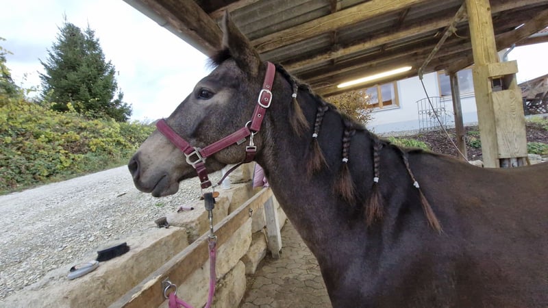 Hallo, ich möchte euch meine kleine Missy vorstellen. Missy ist ein schmaler, sportlich, schlanker Typ ca. 1,50m- kein Gewichtsträger und eine wirklich tolle Bewegerin! In ihrer Abstammung finden sich bekannte Reiner wie Einstein Revolution. Sie ist jetzt seit 2,5 Jahren bei mir und wurde schonend gearbeitet. Sie zeigt sich sehr willig und talentiert in der Freiarbeit und möchte immer gefallen! Missy steht seit sie bei mir ist in einer großen, gemischten Herde in Hitzhofen bei Ingolstadt und fühlt sich sehr wohl. Sie ist rang hoch und hat auch noch viel eigene Meinung! Sie ist menschenbezogen und sucht jemanden, der sich viel mit ihr beschäftigt und sie abwechslungsreich auslastet. Ich habe Missy bereits früh angefangen als Handpferd mit ins Gelände zu nehmen und ihr die Welt spielerisch zu zeigen. Meine Stute Sugar hat ihr dabei viel Sicherheit gegeben und sie hat viel durch beobachten gelernt. In der Freiarbeit zeigt sie sich sehr talentiert und sucht immer die Nähe zu ihrem Menschen. Sie wurde am Seil und in der Freiarbeit viel Desensibilisiert und das Gegendruckverhalten wurde umgelenkt. Missy geht heute alleine oder in der Gruppe ins Gelände und lässt sich Problemlos mit Sitz und Stimme regulieren. In der Halle, ist sie sicher in Schritt, Trab, Galopp unterwegs und hat eine gute und schonende Basisausbildung nach dem Pro Ride Konzept genossen. Als 2 jährige hatte sie einen Unfall bei dem sie sich den Rücken verletzt hatte. Diese Verletzung ist laut Tierarzt (kann bei dem behandelten Tierarzt gerne nachgefragt werden) komplett ausgeheilt und behindert sie nicht! Sie wird von mir min. 3mal die Woche geritten - die restlichen Tage der Woche machen wir Stangen-, Longen-, Freiarbeit oder sie geht als Handpferd mit ins Gelände. Missy wird mit passendem Sattel abgegeben (nicht im Preis inbegriffen), da sie sich aber im Wachstum befindet – sollte eine regelmäßige Sattelkontrolle selbstverständlich sein. Es handelt sich um keinen Notverkauf oder ein Verkauf der unter Zeitdruck steht. Deshalb wäre es richtig klasse, wenn du dir Zeit nimmst sie gut kennenzulernen und könntest auch gerne öfter kommen, wenn von deiner Seite gewünscht. Ich möchte sie gerne in erfahrene Hände und an jemanden mit viel Zeit abgeben. Offenstall wäre wünschenswert - sie kennt auch nichts anderes. Natürlich wird Missy regelmäßig geimpft und entwurmt. Genauso werden 1mal im Jahr die Zähne gemacht. 5 Panel n/n Test über die Eltern getestet. Ein kurzer Intervall beim Schmied ist keine Frage. (Missy läuft Barhuf). Eine AKU kann auf Wunsch selbstverständlich gemacht werden. Für nähere Infos könnt ihr mich gerne anrufen bitte schreibt keine Nachrichten. Auf meinem Account auf Insta feelyourhorse.manship findet ihr viele Videos und Eindrücke von ihr. Platz vor Preis! Mobil 0176 322 144 05 Viele liebe Grüße