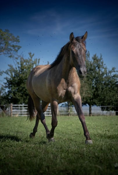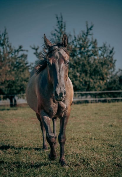 Zum Verkauf steht eine bildhübsche Quarter Horse Stute, geboren am 14.08.2022, in der seltenen und attraktiven Farbe Grullo. Ihr aktuelles Stockmaß liegt bei etwa 148 cm. Sie besitzt AQHA-Papiere sowie einen Equidenpass und ist mit einem Foundation-Anteil von 92 % auch für die Zucht äußerst interessant. Ultima überzeugt durch ein harmonisches, korrektes und kompaktes Gebäude sowie viel Ausdruck. Sie ist gesund, 5-Panel n/n getestet und läuft barhuf. Charakterlich zeigt sie sich besonders angenehm im Umgang. Sie ist brav, anständig, unkompliziert und sehr kooperativ. Dabei ist sie aufmerksam, menschenbezogen und leicht zu händeln. Ihr ausgeprägter "will to please" sowie ihre gute Grundgelassenheit machen sie zu einer zuverlässigen Partnerin, die nicht schreckhaft ist und stets souverän reagiert. Im Herdenverband ist sie sehr sozial und kennt sowohl Offenstallhaltung als auch die Unterbringung in einer Auslaufbox. Auch beim Tierarzt und Hufschmied ist sie brav und unproblematisch. Sie wurde regelmäßig geimpft und entwurmt und auch das Anhängerfahren meistert sie problemlos. Ultima hat bereits eine sechsmonatige Grundausbildung erhalten und kennt neben dem täglichen Handling auch das Gelände, die Führanlage sowie die Arbeit im Roundpen. Sie zeigt sich dabei talentiert und motiviert, verfügt über gute Bewegungen und bringt beste Voraussetzungen für eine sportliche Zukunft mit. Insgesamt ist AHF Ultima La Buena eine vielversprechende junge Stute, die sowohl sportlich gefördert werden kann als auch durch ihren Charakter als verlässliche Partnerin überzeugt. Durch ihre hochwertige Foundation-Abstammung ist sie zudem eine spannende Option für die Zucht.