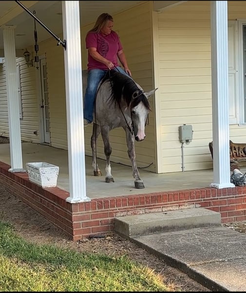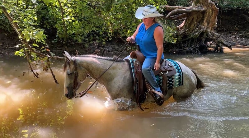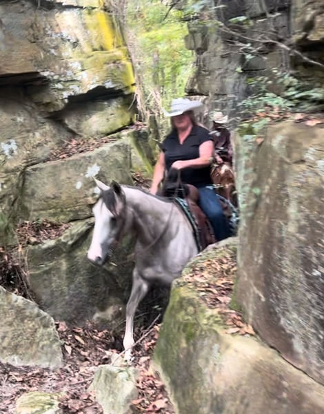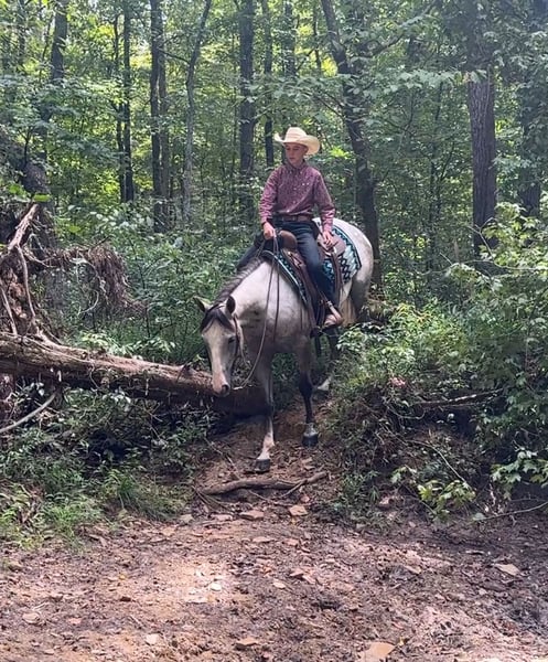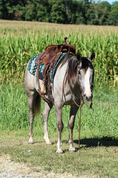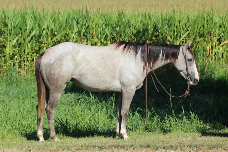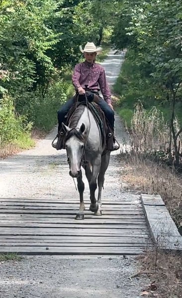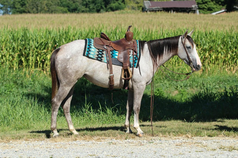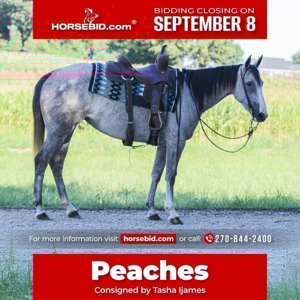 ♦️ 𝐭𝐡𝐞 𝐒𝐞𝐩𝐭𝐞𝐦𝐛𝐞𝐫 𝑺𝒆𝒍𝒆𝒄𝒕 ♦️ Happening now thru MONDAY | SEPTEMBER 8th - Available EXCLUSIVELY on HorseBid's website! For more details and to register visit: www.Horsebid.com CONSIGNOR CONTACT: Tasha Ijames 270-844-2400 LOCATION: Henderson, KY BREED: Quarter Horse REGISTERED: Yes REGISTERED NAME: Peachy Keen Lena COLOR: Gray HEIGHT: 14.3 AGE: 4 GENDER: Mare AQHA 2021 Peachy Keen Lena gray mare Peaches stands about 14.3 hands tall and as sweet as can be. She is a well-bred and well-ridden young mare with tons of eye appeal. Peaches could be a top arena prospect, roping horse, ranch horse, trail horse and make your forever horse. She is a doll. You can jump on Peaches bareback in the field with just a halter or neck rope. Peaches has had a real job with the same girl since she was started as a 2-year-old. She knows a days work and will go with no quit. Peaches has been worked at the stockyards every week penning back cattle and loading trucks. She has also been started on the head and heel side roping and has a good start. Peaches is a point and go type of horse. She has been hauled and trail ridden extensively through many different types of terrain all over the country. She is sure footed and honest. Peaches is not spooky and will cross creeks, go through any body type of water, thick brush, logs, bridges, rough terrain and up and down cliffs with ease. She has been rode on the road and is use to all kinds of traffic, heavy machinery and ATV’s. She is also dog safe. You can ride Peaches out alone with ease or with other horses. She will make a great horse for any level of rider. She is a sweet and well mannered mare. Peaches has a good neck rein on her, good stop, W/T/C, and has a nice short lope, hauls good, bathes good, stands good for farrier and to be saddled and mounted. Great on picket line and over night camping. She stands quiet with no nonsense. Peaches is easy to catch and loves attention. Peaches is the family-safe trail horse everyone is looking for. If you can sit in the saddle and hold the reins you can ride Peaches. We invite anyone and everyone to come meet and ride Peaches at our barn in Henderson, Kentucky. We work with several shippers and are gladly to assist with transportation arrangements. Contact Tasha at 270-844-2400 for any and all questions.