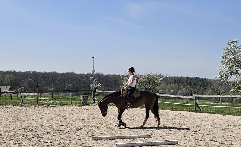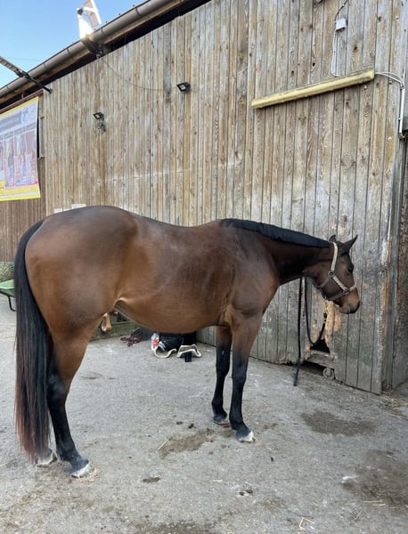AQHA Stute geb. 2022 ⚪️Toffee ⚪️2022 ⚪️My Rods Chipped x Radical Rooney ⚪️Angeritten Toffee ist eine hübsche und korrekt gebaute Stute.Sie ist sehr ruhig und hat ein angenehmes und unkompliziertes Wesen. Sie hat bisher noch keine Turniererfahrung gesammelt und wurde schonend angeritten. Geländeritte/Spaziergänge, Hufschmied sowie Hängerfahrten sind kein Problem. Toffee ist gesund, wurde regelmäßig geimpft, sowie entwurmt. Sie weist keine gesundheitlichen Probleme auf. Bei Interesse oder weitere Informationen gerne per PN oder telefonisch melden. Platz vor Preis!!