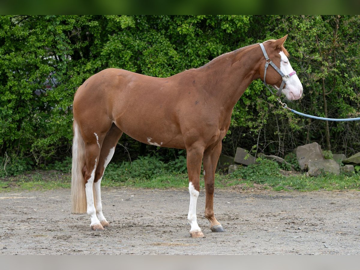 MB Livia Shininggun ist eine 2021 geborene Quarter Horse Stute in der Farbe Sorrel mit einem aktuellen Stockmaß von ca. 150 cm. Sie verfügt über AQHA Papiere sowie einen Equidenpass und präsentiert sich als bildhübsche, korrekt gebaute und sehr typvolle Stute mit viel Ausdruck und harmonischem Gesamtbild. Sie ist gesund, 6-Panel n/n getestet und wird regelmäßig geimpft und entwurmt. Im täglichen Umgang zeigt die Stute sich sehr menschenbezogen, freundlich und unkompliziert. Livia ist brav beim Tierarzt und Hufschmied, lässt sich problemlos verladen und besitzt keinerlei Unarten. Aktuell steht sie in einer Paddockbox, verbringt den Sommer auf der Weide und ist gut sozialisiert. Vorne ist sie barhuf, hinten ist sie mit Slidingeisen ausgestattet. Ausbildungstechnisch wurde Livia etwa zweieinhalb Jahre professionell im Beritt gefördert und bereits erfolgreich auf Turnieren vorgestellt. Sie ist im EWU Jungpferdeprogramm eingezahlt und zeigt sich auf Turnier ebenso wie im Alltag stets brav, kontrollierbar und zuverlässig. Auch im Gelände ist sie sicher und gelassen. Die Stute überzeugt durch ihre hohe Arbeitsbereitschaft, ihren ausgeprägten "will to please" und ihre Motivation unter dem Reiter. Damit bringt sie beste Voraussetzungen für den ambitionierten Reiter mit, insbesondere im Reining- und Ranch Riding Bereich, wo sie bereits jetzt als ready to show gilt. Ihre erstklassige Reining-Abstammung (Shining Spark x Wimpys Smoking Gun Enkelin) rundet ihr Gesamtpaket ab und macht sie zu einer talentierten Nachwuchsstute mit viel sportlichem Potenzial und gleichzeitig einem sehr angenehmen Charakter.