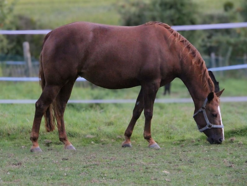 Cette superbe poulinière cherche un nouveau foyer. 2021 jument sorrel 6 panel n/n Portante de Gunner Dun It Again pour début mai 148cm Elle s'est blessée au genou à l'âge de 3 ans. Celle-ci est complètement guérie mais il n'est pas certain qu'elle soit apte pour le reining high class. Elle peut être réentraînée après le poulinage pour le loisir / allround. Ou on peut continuer à l'utiliser comme poulinière ☺️ Un vieux papier très cool sur lequel n'importe quel étalon moderne peut être monté. Un caractère très doux et très simple. Super deal ! Pour plus d'infos, merci de m'envoyer un message Localisation près de Hanovre Allemagne