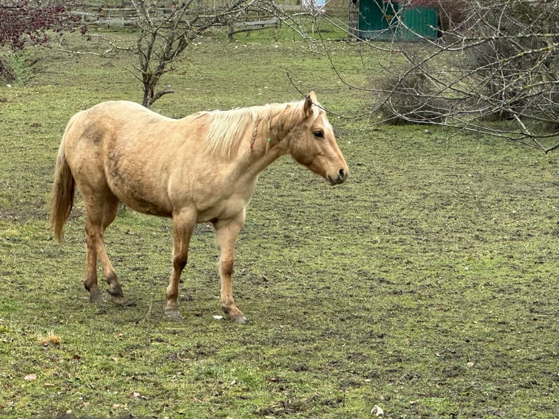 Ecco il testo dell'annuncio: --- **American Quarter Horse mare, born in 2021, Dunalino, standing approximately 148 cm at the withers.** This lovely young mare is a true reflection of the versatile and reliable Quarter Horse breed. With her friendly temperament and well-ridden nature, she is suitable for riders of various levels. She enjoys taking walks and is easy to handle, making her an excellent choice for those looking for a trustworthy partner for leisure riding or light work. Her striking Dunalino coat adds to her charm and presence in the arena or on the trail. A promising prospect for anyone seeking a well-bred, good-minded mare with a solid foundation and a bright future ahead.