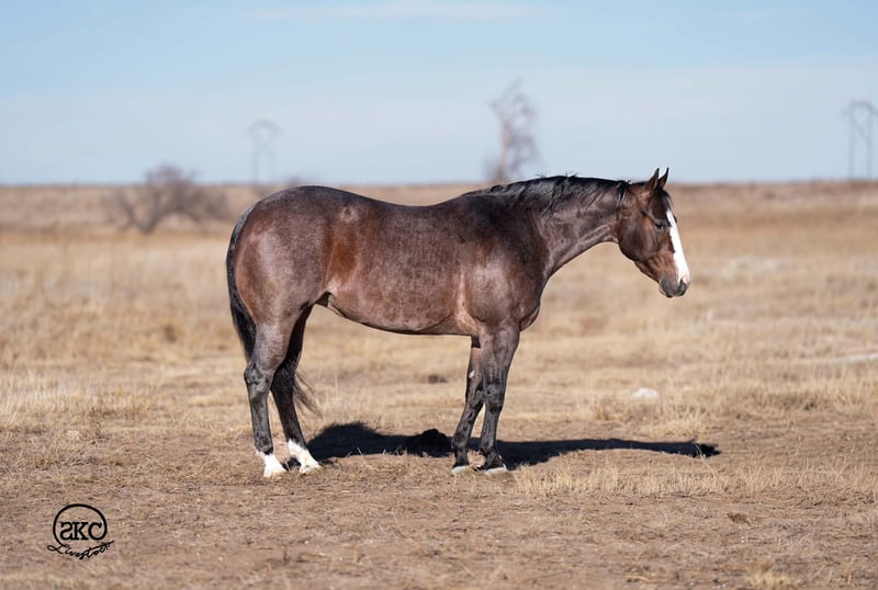 🎄𝐓𝐇𝐄 𝑯𝒐𝒍𝒊𝒅𝒂𝒚 𝐂𝐋𝐀𝐒𝐒𝐈𝐂🎄 Happening now thru MONDAY | DECEMBER 15th - Available EXCLUSIVELY on HorseBid's website! For more details and to register visit: www.Horsebid.com CONSIGNOR CONTACT: Blackwater Horse Co. 806-786-4318 LOCATION: Canyon TX BREED: AQHA REGISTERED: Yes REGISTERED NAME: Black Market Gucci COLOR: Bay Roan HEIGHT: 14.3 AGE: 4 GENDER: Mare Mamba is a drop-dead gorgeous roan mare with the kind of presence that turns heads everywhere she goes. She’s exceptionally well bred, and it shows in every step she takes. Built correct and balanced, she carries herself with a natural elegance that makes her a standout the moment she enters the arena. Mamba rides around collected, stays between the reins, and feels smooth and honest every ride. She’s the kind of mare you can trust to stay consistent, whether she’s being tuned on, asked to step up, or just cruised around for an easy day. Even though this is a young mare, she’s got the mindset of a mature gelding. She does excellent with time off, whether she is turned out or in a stall, saddle her up and lope off with no problems. This mare is 100% sound to breed as well! Use her for a few years and then get a gorgeous colt out of her! With her size and color she will throw some flashy offspring. A beautiful, fluid mover, she floats across the ground with cadence and reach, making her a natural fit for anything from the show pen, to ranch versatility, to a classy using horse. She has been hauled to the local reining clinics and would be a great candidate for the VRH classes. Her talent is matched by a willing, level-headed mindset that makes her a pleasure to ride for all types of riders. Mamba has been exposed to all sorts of elements whether it be trail riding in the Palo Duro Canyon , or riding down the Canadian River Crossing water , logs or brush this mare has been there done that . We have been roping slow steers on her in the arena and she is showing lots of potential in every event . This is the type of mare that is just simply easy ! If you are looking for an all around mare to ride and raise one heck of a colt in the up coming years please come take a look at her ! Mamba is the complete package — looks, brains, breeding, and ability — and the kind you don’t come across often. Please call 📞 Tanner @ 806-786-4318