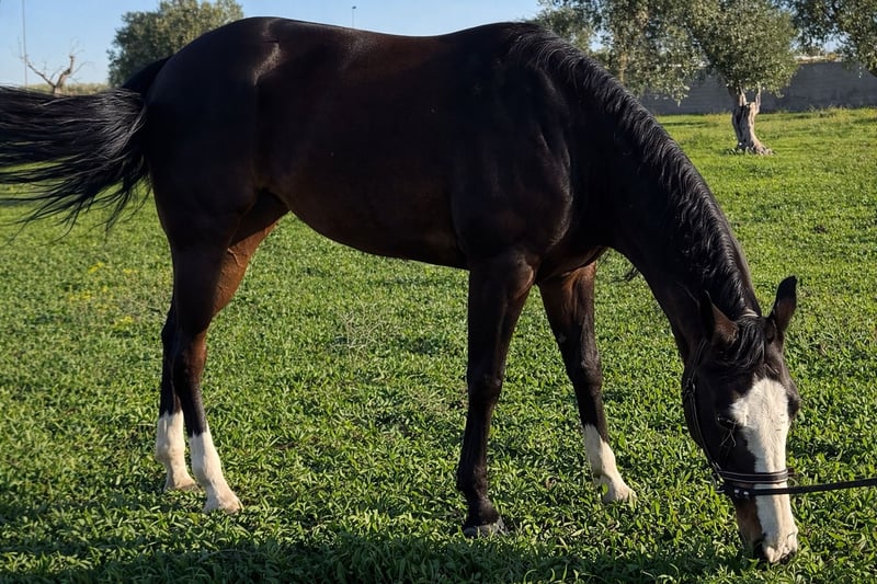 LA CUSTOMBLACKSPOT – AQH Stute – 4 Jahre Colonel Shining Gun x PC Customblack Widow Zum Verkauf steht LA CUSTOMBLACKSPOT, 4-jährige American Quarter Horse Stute mit großer Substanz, korrekt gebaut und gesund. 🐎 Herausragende Abstammung ✔️ Vater: Colonel Shining Gun ✔️ Mutter: PC Customblack Widow, das Erfolgspferd von Manuel Cortesi ✔️ Über 50.000 € Preisgeld, in Italien ungeschlagen ✔️ Einzige Stute aus der Mutterlinie (Mutter verstorben) ✔️ Sehr interessant auch als Zuchtstute Die Stute hat bisher keine Turnierstarts, ausschließlich aufgrund von Unstimmigkeiten zwischen den früheren Miteigentümern – nicht aus gesundheitlichen oder leistungsbedingten Gründen. 🔥 Ausbildung & Perspektive • Alle Reining-Manöver auf Plus-Niveau • Aktuell in Vorbereitung für das Derby 2026 • Extrem ruhiges, zuverlässiges Mindset • Sehr lernfähig und einfach im Training, auch für ambitionierte Amateure geeignet 📐 Exterieur • Große, kräftige Stute • Stockmaß ca. 1,60 m • Kristallblaue Augen 🩺 Gesundheit • Für jede tierärztliche Untersuchung garantiert • Papiere vollständig und in Ordnung 💰 Sehr attraktiver und marktgerechter Preis in Relation zu Abstammung, Ausbildung und Perspektive. 📍 Standort: Italien 🔒 Verkauf ausschließlich an seriöse und überprüfbare Käufer. 📩 Anfragen bitte mit vollständigen Angaben. LA CUSTOMBLACKSPOT – AQH Mare – 4 years old Colonel Shining Gun x PC Customblack Widow For sale LA CUSTOMBLACKSPOT, 4-year-old American Quarter Horse mare, big framed, correct, sound and well built. 🐎 Outstanding pedigree ✔️ Sired by Colonel Shining Gun ✔️ Out of PC Customblack Widow, the mare ridden by Manuel Cortesi ✔️ Over €50,000 in earnings, undefeated in Italy ✔️ Only female offspring from the dam (dam deceased) ✔️ Extremely interesting also as a broodmare prospect The mare has never been shown, solely due to disagreements between former co-owners, not for health or performance reasons. 🔥 Training & Potential • All reining maneuvers consistently at plus level • Currently in preparation for the 2026 Derby • Extremely calm, honest and reliable mindset • Very easy to train and quick learner, suitable also for ambitious amateurs under guidance 📐 Conformation & Appearance • Big, strong mare • Approx. 1.60 m (15.3 hh) • Crystal blue eyes 🩺 Health • Guaranteed for any veterinary examination • Full documentation in order 💰 Very attractive and competitive price, considering pedigree, training level and future sport/breeding potential. 📍 Located in Italy 🔒 Sale only to serious and verifiable buyers. 📩 Please contact with complete and clear information.