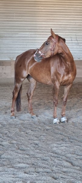 Traumstute mit Top-Papier sucht ihr Für-immer-Zuhause! Zum Verkauf steht Silver Magician Cat, eine wunderschöne *5-jährige Quarter Horse Stute (Chestnut, 2020) mit hervorragender Abstammung und vielversprechendem Talent. Eckdaten: • Rasse: American Quarter Horse • Farbe: Chestnut • Geschlecht: Stute • Geboren: 30. April 2020 • Preis: derzeit 15.000 € VB (Preis entwickelt sich, je nach Ausbildungsstand) • Abstammung: Smartest Magician x Smoothies Smart Cat (Pedigree mit Hochkarätern wie High Brow Cat, Smart Little Lena & Peppy San Badger) Besonderheiten & Talent: Silver Magician Cat besticht durch ihre fantastischen Bewegungen, viel Ausdruck und eine enorme Präsenz. Sie zeigt jetzt schon, dass sie nicht nur reiterlich, sondern auch züchterisch interessant sein wird – ihr Papier spricht für sich! Sie befindet sich aktuell in der weiteren Grundausbildung und hat auch schon Erfahrung am Rind gesammelt. Sie ist lernwillig, motiviert und wartet nur darauf, weiter gefördert zu werden. Für wen geeignet? Da sie sehr talentiert ist, wünscht sie sich einen erfahrenen Reiter, der Freude daran hat, ihr Potenzial weiter auszubilden. Mit ihrem Bewegungstalent und ihrer Abstammung ist sie prädestiniert für den Rindersport (Cutting, Cowhorse, Ranch Riding) – aber auch für ambitionierte Reiter anderer Sparten hochinteressant. Zukunftsperspektive: Dank ihres Top-Papiers wird sie später auch für die Zucht sehr spannend. Eine Investition, die sich doppelt lohnt – im Sport wie in der Zucht. • Große AKU vom 17.08.2023 ohne Befund, Röntgenbilder vorhanden • Regelmäßig beim Zahnarzt, Physiotherapeut, Entwurmung und Mineralstoffversorgung • Gepflegt und liebevoll betreut Extras: • Passendes, komplettes Equipment kann bei Bedarf mit erworben werden • Verkauf erfolgt aus gesundheitlich bedingter Reitsportaufgabe Besichtigung & Proberitt möglich! Silver Magician Cat kann nach Absprache jederzeit besichtigt und probegeritten werden. Wenn Sie eine Stute mit Charakter, Qualität und großem Potenzial suchen, dann ist Silver Magician Cat genau die Richtige!
