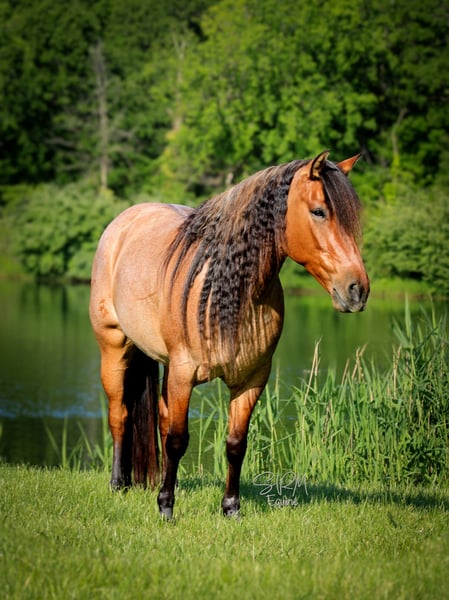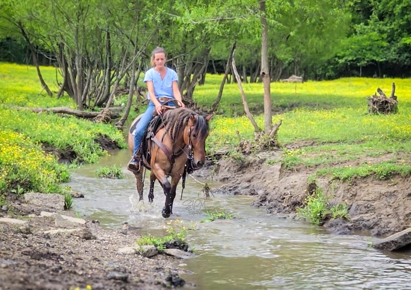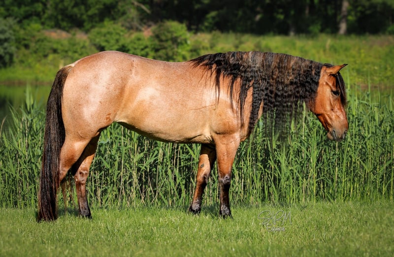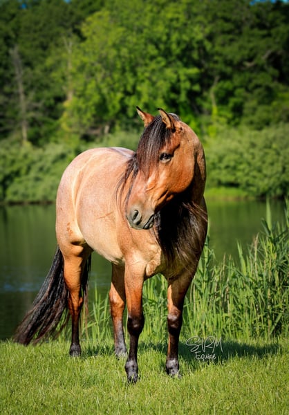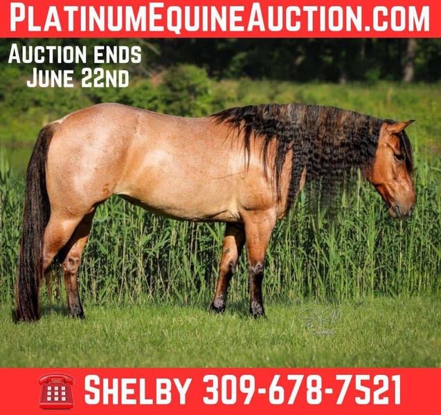 ONLINE AUCTION Place your bids at www.PlatinumEquineAuction.com Starting Bid $3500 Auction ends June 22nd, 2025 Need a new saddle? Check out White Rock Saddles on our website or Facebook! Poco is a stunning, bay roan, 5 yr old, 13.3-hand Quarter Pony mare, that turns heads wherever she goes. With her long, flowing mane and tail, stocky build, and eye-catching coloring, she’s the total package in a pint-sized powerhouse. She’s the perfect in-between size—small enough to make kids feel confident, yet sturdy enough for the adults to enjoy as well. Poco is truly a horse the whole family can enjoy. She’s logged countless trail miles and handles rough terrain like a pro—crossing water, climbing hills, and confidently leading the way like she owns the trail. She’s happy going out solo or splitting off from the group without hesitation. Got snacks or a trail soda to pack along? Poco has you covered! She’s carried her fair share of saddle bags down the trail the past few years and answered the call to be my trusty mushroom-hunting partner this past spring as well. This means that her and I packed out by ourselves through the woods for hours, she stood tied to trees while I walked around looking for gold and we came back with plastic bags dangling off her full of mushrooms. She never batted an eye! But Poco’s not just a trail queen—she’s also super fun in the arena. Western or English, she’s game for both! She’s smooth, balanced, and an absolute dream to lope circles on. With a great handle, neck rein, soft response to leg cues, and a stop that’ll make you grin, she’s as broke as they come. She has been used to check pastures with longhorn cattle even bigger than her, and she never flinched an inch. She’ll drag a calf, log, barrel, whatever your heart desires. Needing a gaming or breakaway pony? Poco can answer the call for that as well! She has a great start on both the barrel and the pole patterns, but will also track a calf and stop on a dime. So go get yourself a rope and have some fun! Poco is quiet, kind, and as steady as they come. She’s seen the fun show scene, flags, tarps, ropes, chickens, dogs, traffic, and kids—and she takes it all in stride. She’s easy for the farrier, good for baths and brushing, stands tied, loads/unloads great, and rides just as nicely bareback as she does under saddle. Whether she’s in a stall or out in the pasture, Poco settles in without a fuss. If you’re looking for a safe, versatile, and fun mare who can do it all—and look good doing it—Poco’s your girl. She’ll make a great addition to any family or even a lesson program. Poco is located in Tremont, Illinois. I’d love for you to come meet her! Call SRM Equine Shelby 309-678-7521 with any questions, to set up a meeting or discuss more about Poco. Located in Tremont, IL. ONLINE AUCTION Place your bids at www.PlatinumEquineAuction.com Starting Bid $3500 Auction ends June 22nd, 2025 Need a new saddle? Check out White Rock Saddles on our website or Facebook!