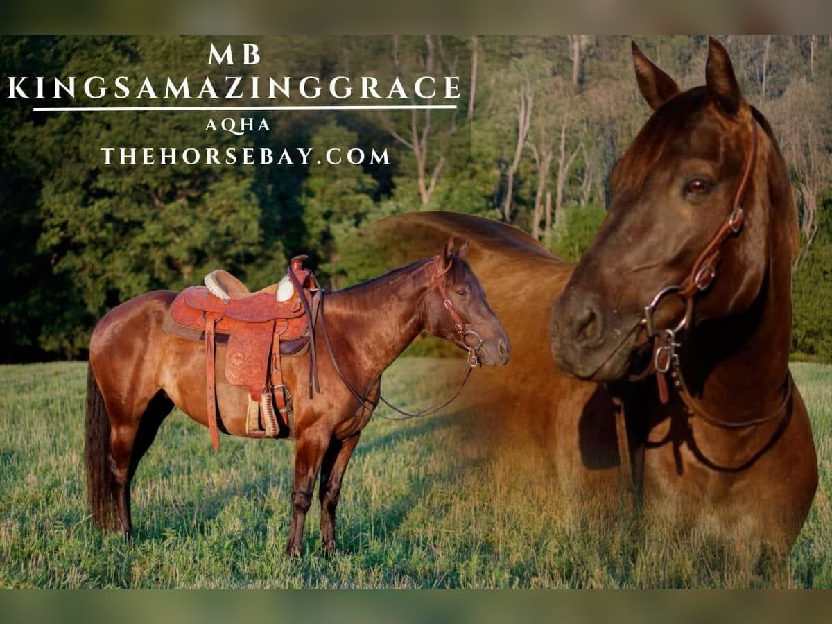 MB KINGSAMAZINGGRACE – “Gracie” is a 5-year-old, 14.1h foundation-bred mare with all the right qualities to excel in the discipline of your choice. Started correctly and ready to go in any direction, she’s packed with potential. This sweet, willing mare is gentle enough for a confident youth but stout enough to carry most riders. She has a big stop and a soft neck rein, and responds well to leg pressure, making her a pleasure to ride. Whether you want to finish her into a heeler, ranch horse, or versatile all-around partner, Gracie is a solid foundation to build on. She hauls with ease and has already been exposed to cattle sorts, rodeo grounds, and extensive trail riding. Surefooted and confident, Gracie crosses water, bridges, logs, and embankments without hesitation. She’s steady whether you’re riding solo or in a group, and has been used to move and sort cattle, with ropes swung off her. With her laid-back temperament and eager-to-please attitude, Gracie is the kind of mare that’s easy to get along with and ready for someone to take her to the next level.