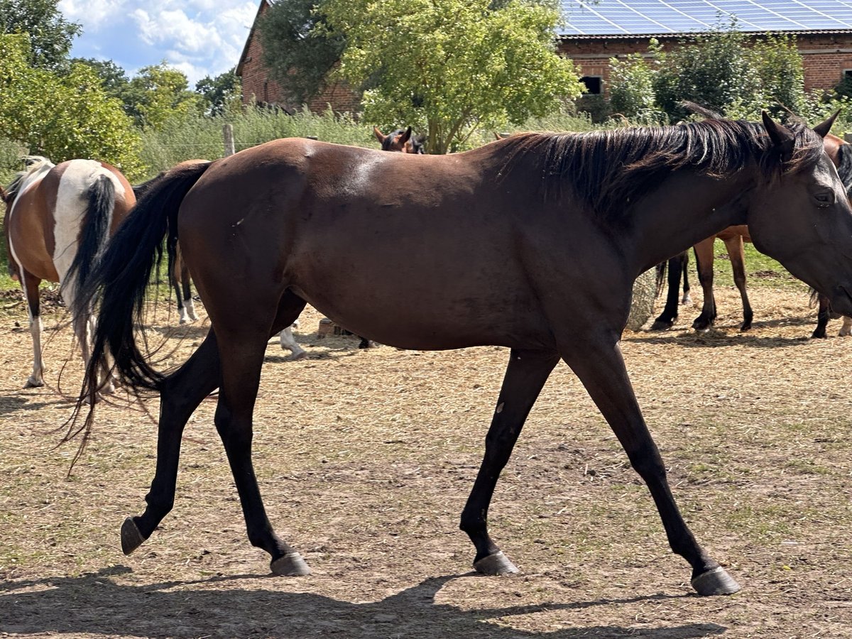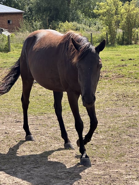 Sell an elegant American Quarter Horse cross mare, born in 2019. This dark bay mare impresses with her friendly demeanor and balanced temperament, especially once she is familiar with her surroundings and her handler. Standing at 15.1 hands, she is ideally suited for leisure riding. If you win her heart, she will always be a reliable partner by your side. She will become a versatile companion, suitable for relaxed rides as well as light trail or leisure outings. The dark bay mare has basic training but has not yet been ridden. Time is running out, and she is eager to work. Therefore, we are reducing our stock and are placing Riva in a new, nurturing home. Please feel free to contact me for further information.