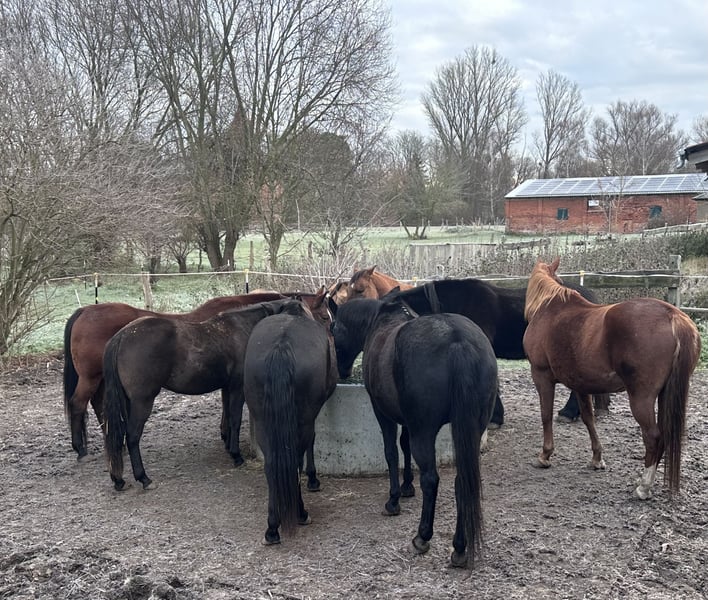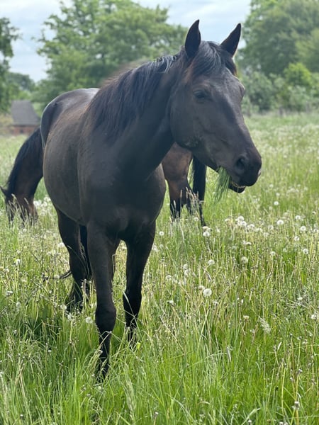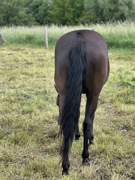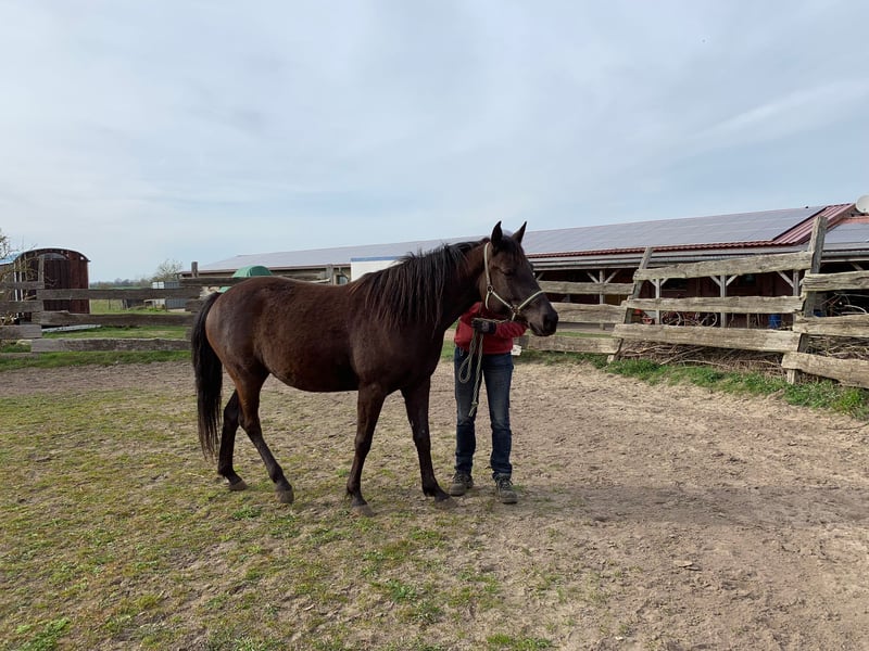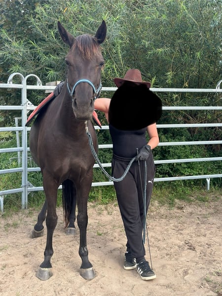 Verkaufe eine elegante American Quarter Horse Mix Stute, geboren im Jahr 2019. Die Rappstute besticht durch ihre freundliche Ausstrahlung und ihr ausgeglichenes Wesen, wenn sie die Umgebung und besonders ihren Menschen kennt. Mit einem Stockmaß von 151 cm ist sie perfekt für den Freizeitbereich geeignet. Eroberst du ihr Herz wird sie stets zuverlässig zu dir halten. Sie wird dir eine vielseitige Partnerin, die du zukünftig sowohl für entspannte Ausritte als auch für kleinere Trail- oder Freizeitritte einsetzen kannst. Die Rapp-Stute verfügt über eine Grundausbildung, wurde aber noch nicht geritten. Die Zeit läuft weg und sie möchte gerne arbeiten. Daher wird bei uns der Bestand verkleinert und auch Riva in ein neues, förderndes Zuhause abgegeben. Für weitere Informationen stehe ich gerne zur Verfügung.